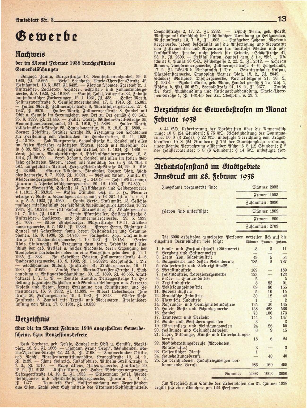 I I . 23.996. — Maurer Nikolaus, Standplatz Bozner Platz, Platzdienstgewerbe. 8. 7. 1922. I I . 10.021. — Meßner Anton, Innstr. 67,