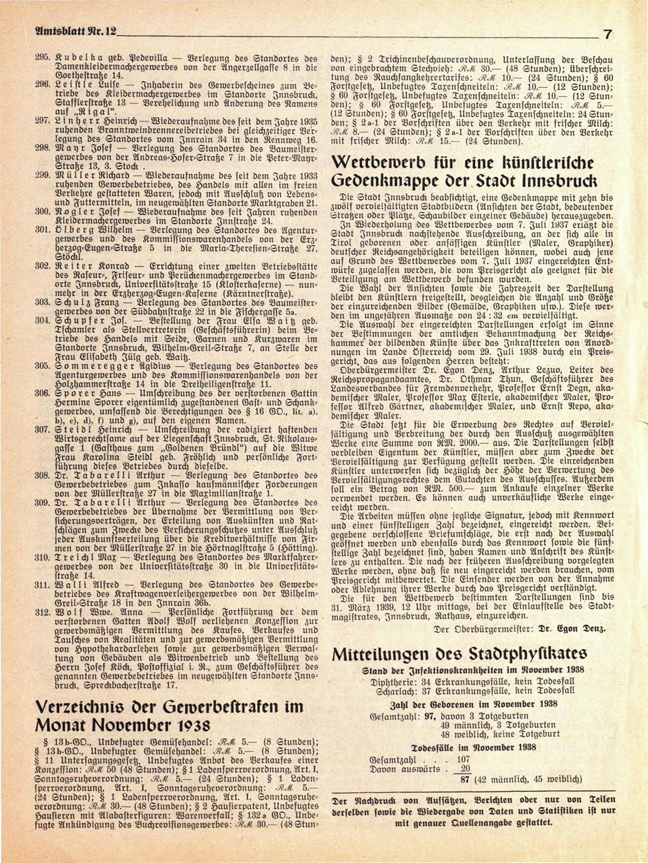 31. März 1939, 12 Uhr mittags, bei der Einlaufstelle des Stadtmagistrates, Innsbruck, Rathaus, einzureichen.