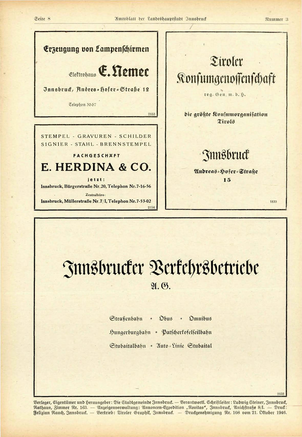 Amtoblatt dcr Landeshauptstadt Innsbruck