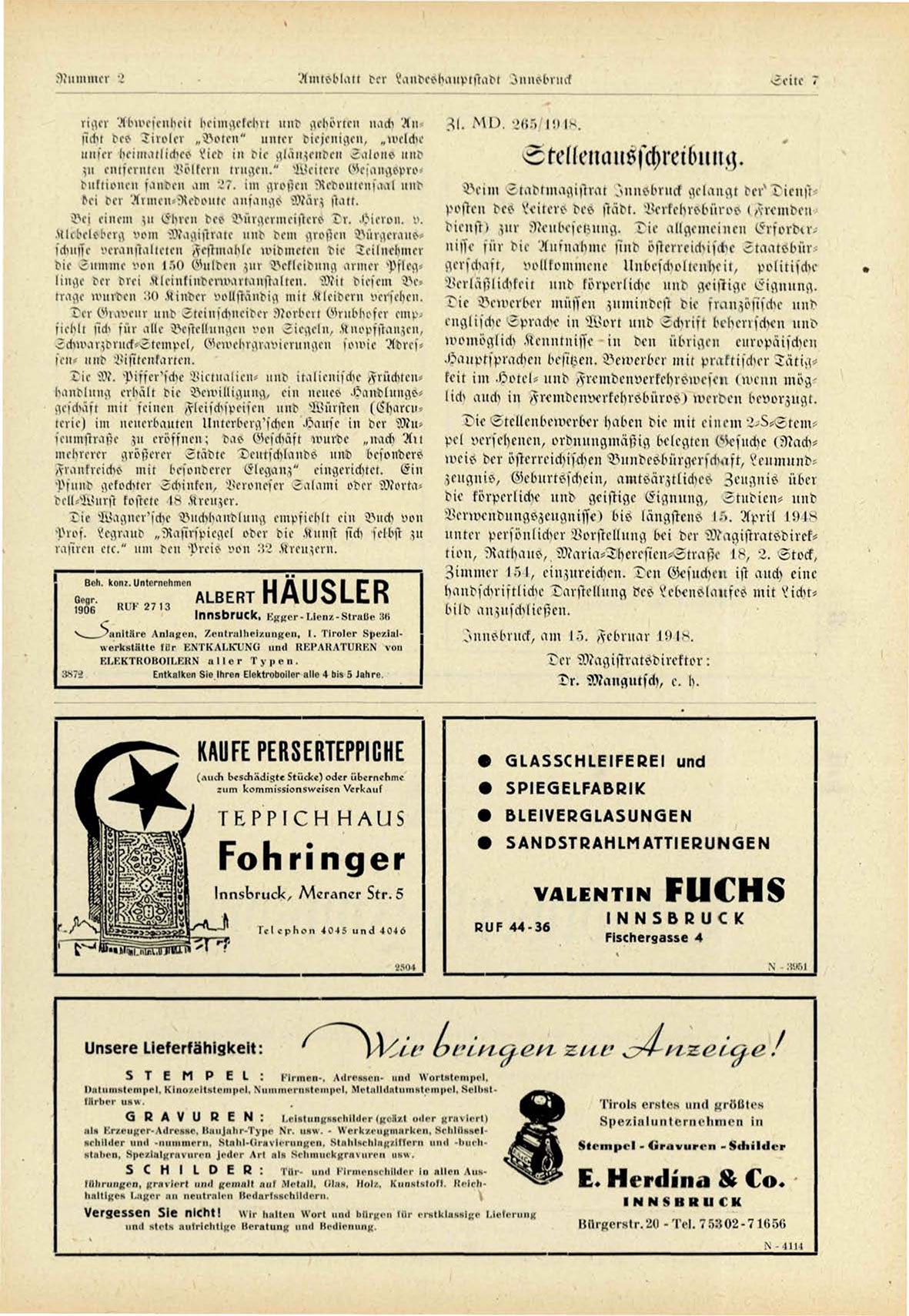 unter persönlicher Vorstellung bci der Magistratsdirektion, Natbane>, Maria-Tbcresl"en-Ttrasie l.^, "2. Stock,