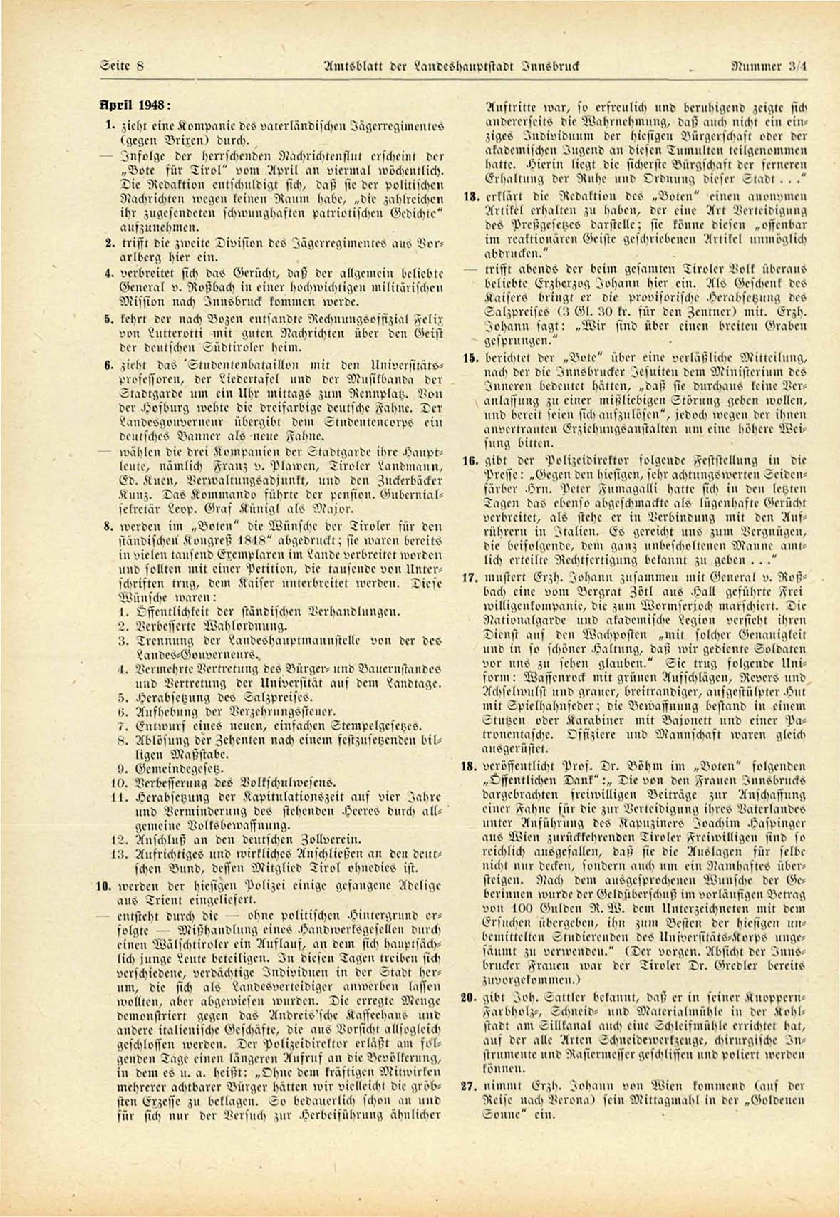 8. werden im „ B o t e n " die Wünsche der Tiroler für den