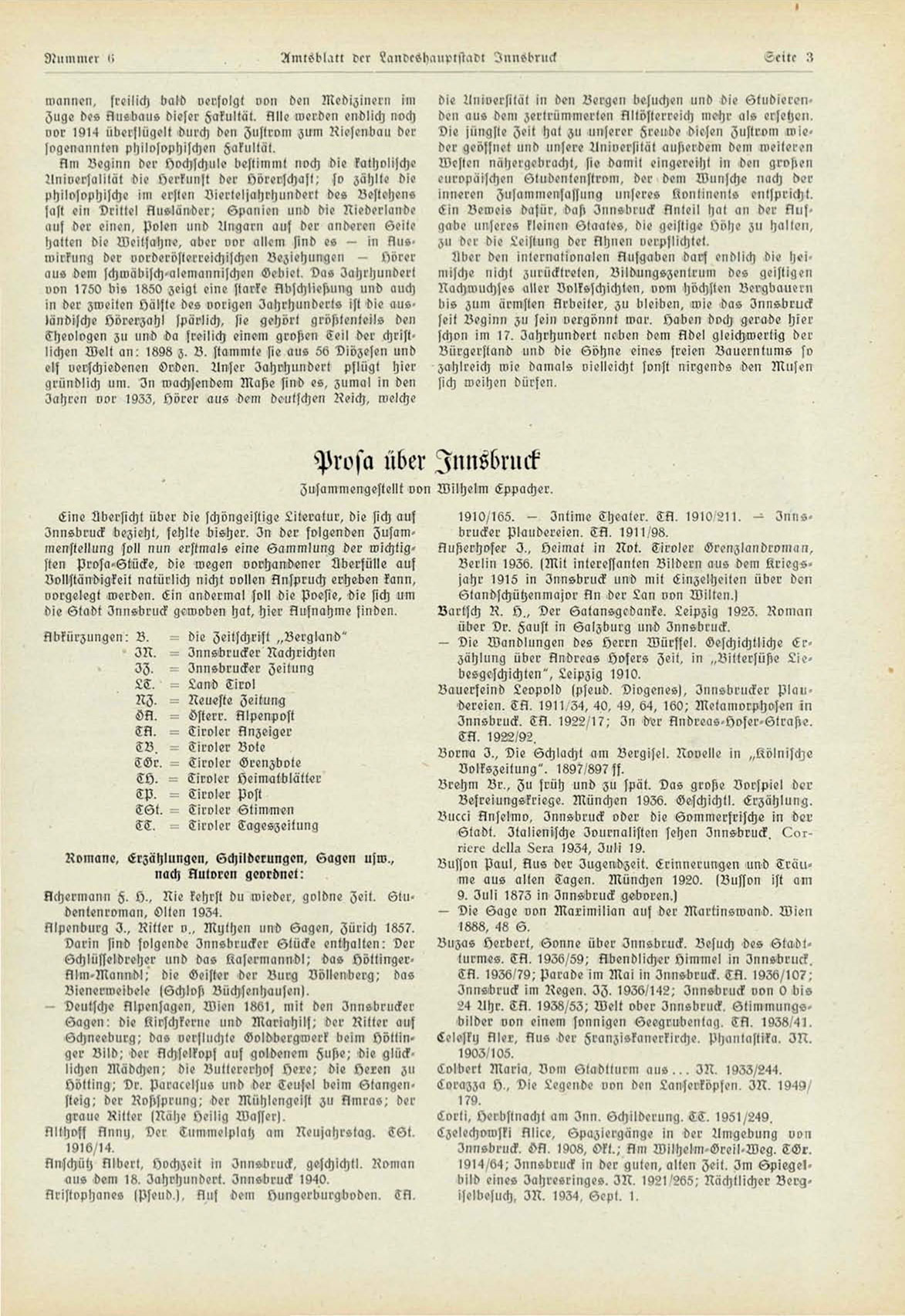 Innsbruck bezieht, fehlte bisher. I n der folgenden Zusammenstellung soll nun erstmals eine Sammlung der wichtigsten Prosa-Stücke, die wegen vorhandener Aberfülle auf