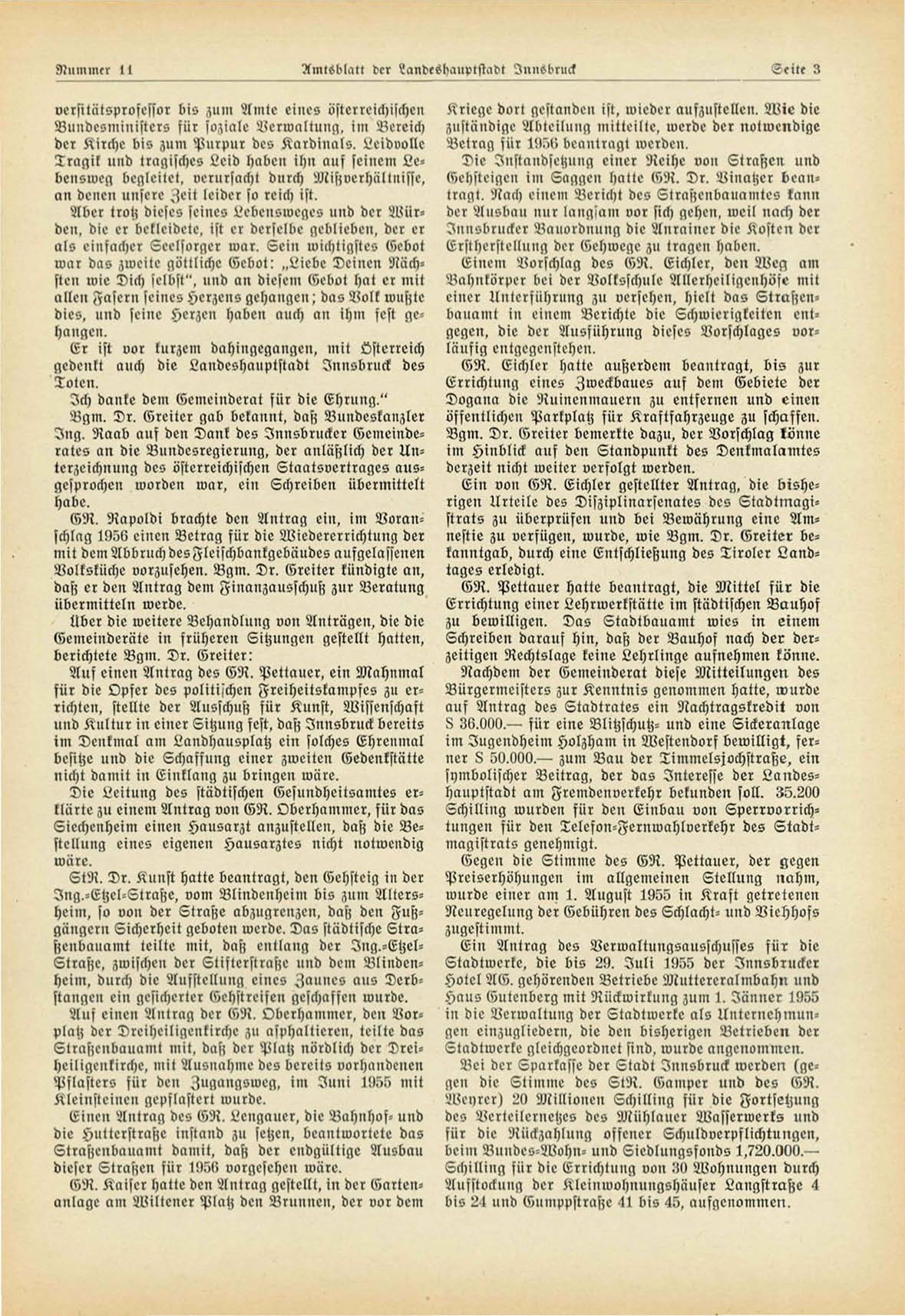 I n g . Raab auf den Dank des Innsbrucker Gcmeinderales an die Bundesregierung, der anläßlich der Unterzeichnung des österreichischen Etaatsvertrnges ausgesprochen worden war, ein Schreiben übermittelt