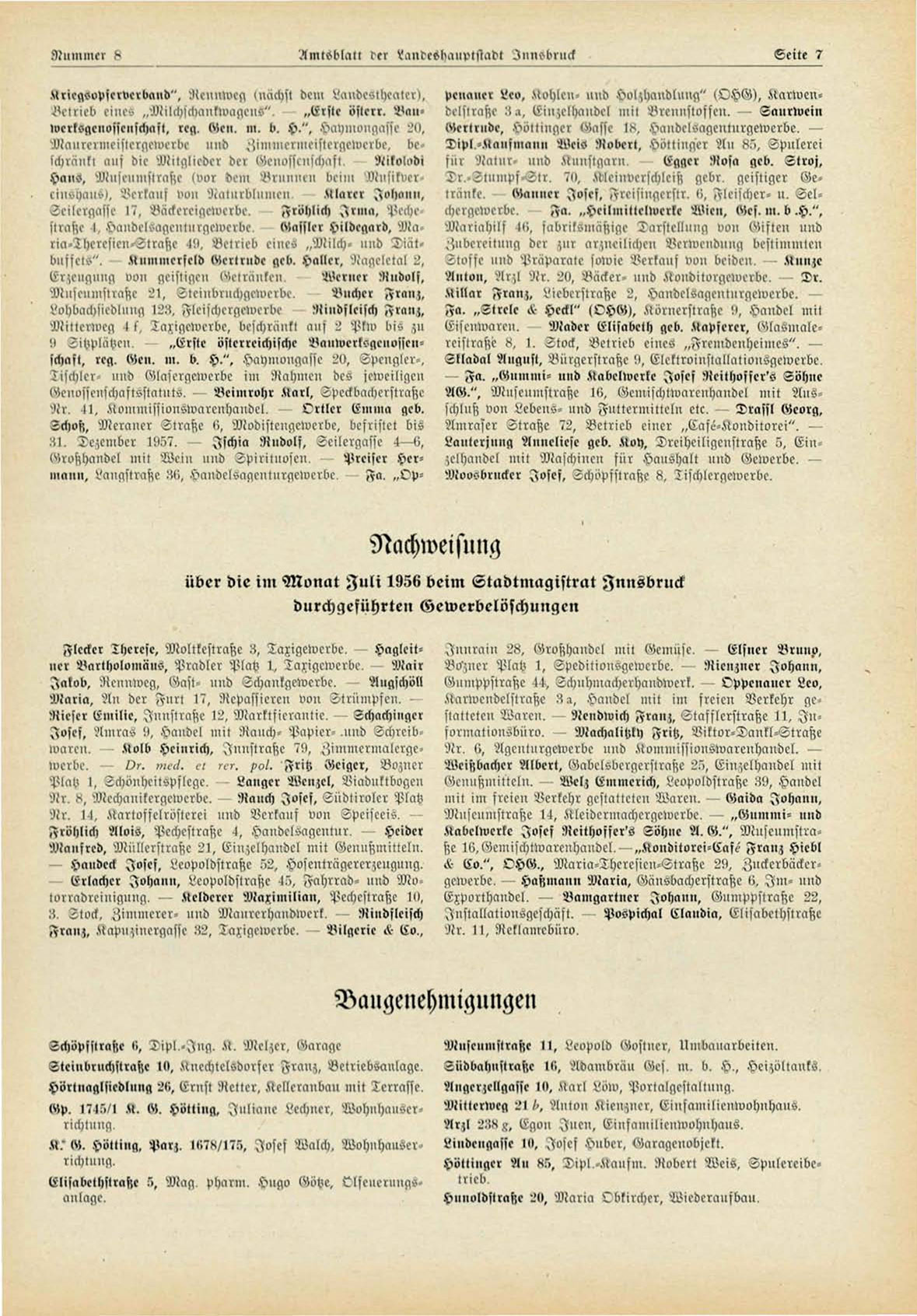 über die im Monat Fuli 1956 beim Stadtmagistrat Innsbruck