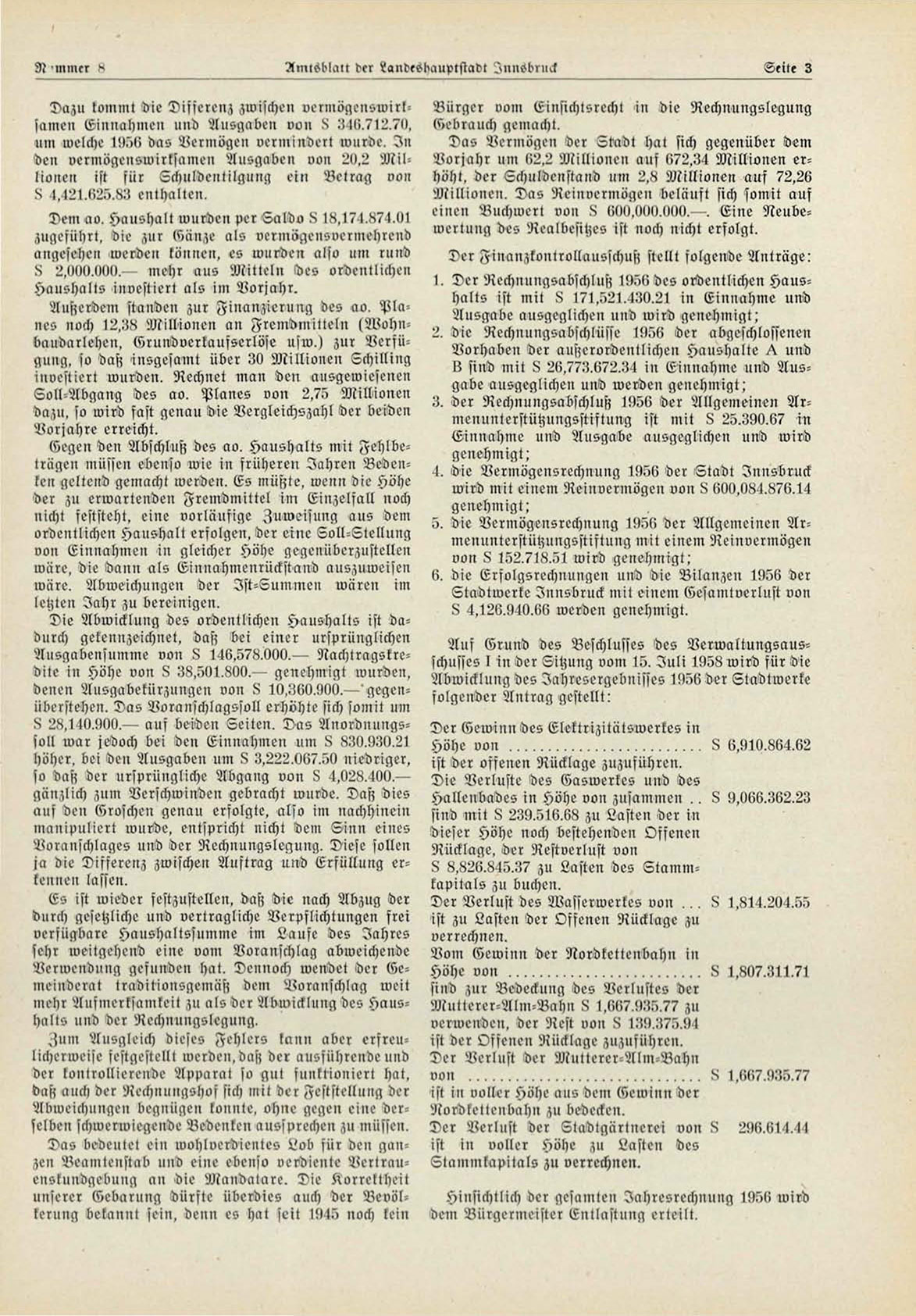 l. die Vermögensrechnung 1956 der Stadt Innsbruck