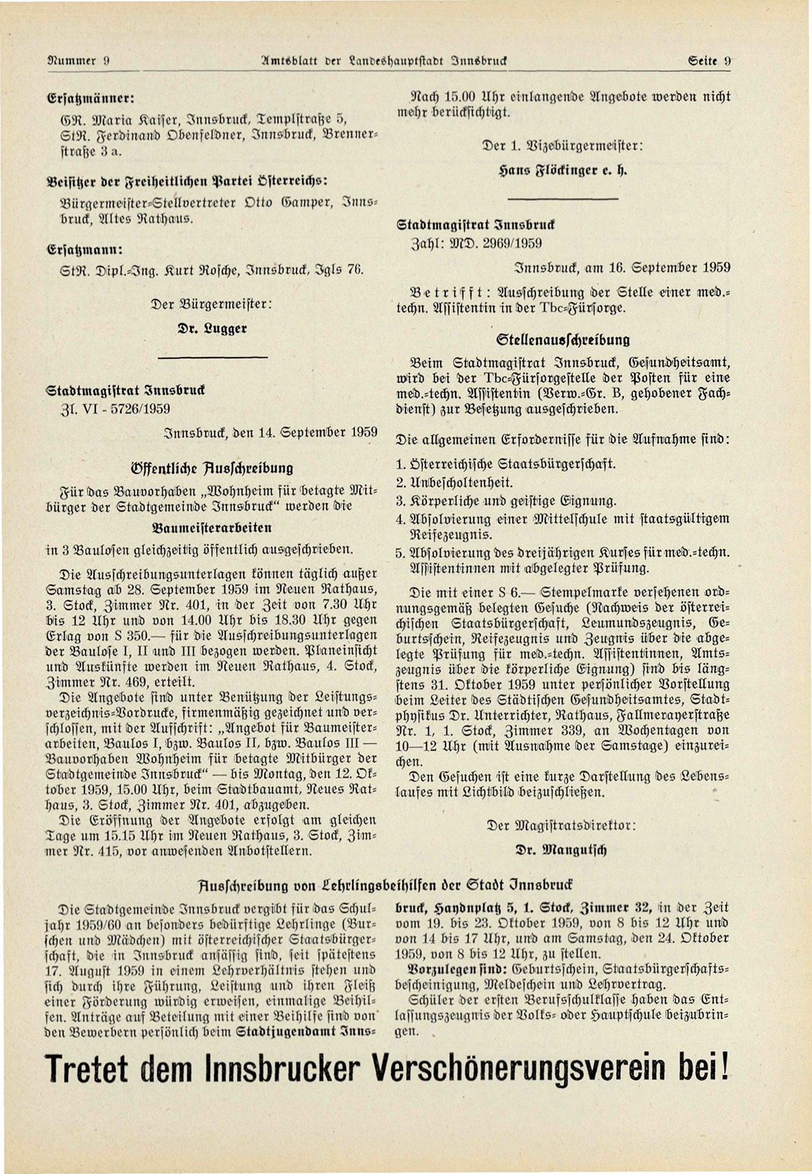 Stadtgemeinde Innsbruck" — bis Montag, den 12. Oktober 1959. 15.00 Uhr, beim Stadtbauamt, Neues Rathaus. 3. Stock. Zimmer Nr. 401, abzugeben.