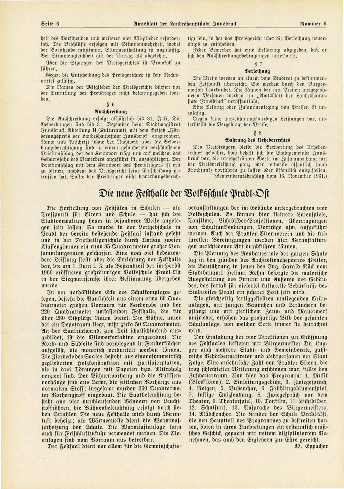Die Preise werden an einem vom Stadtrat zu bestimmenden Zeitpunkt überreicht. Sie werden durch dcu Bürgermeister beurkundet. Die Namen der mit Preisen ausgezeichneten Persoueu werden im „Amtsblatt der Vandeshanptstadt Innsbruck" veröffentlicht.
