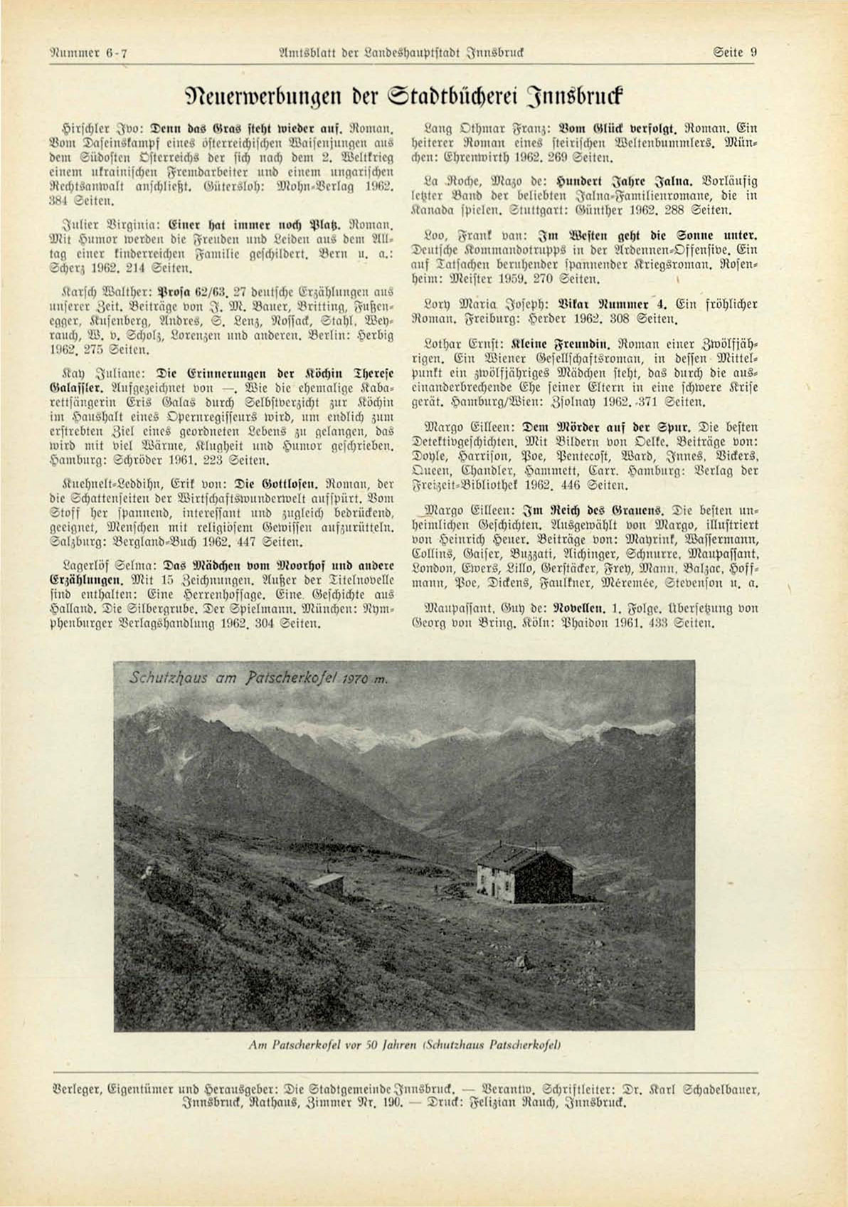 Verleger, Eigentümer und Herausgeber: Die Stadtgemeiudc Innsbruck. — Verantw. Schriftleiter: D r . K a r l Schadelbaner,