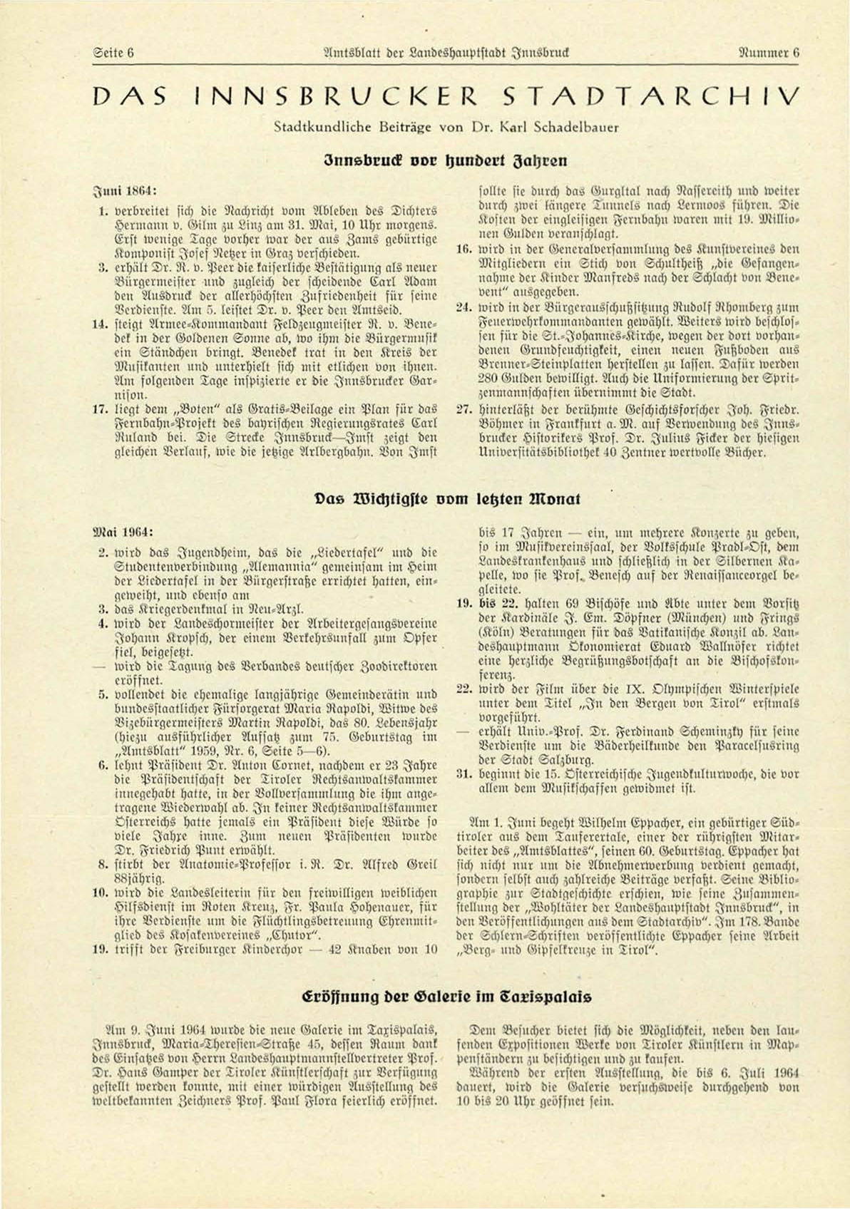 sondern selbst anch zahlreiche Beiträge verfaßt. Seine Bibliographie znr Stadtgeschichte erschien, wie seine Znsammeustellnng der „Wohltäter der Landeshauptstadt Innsbruck", in