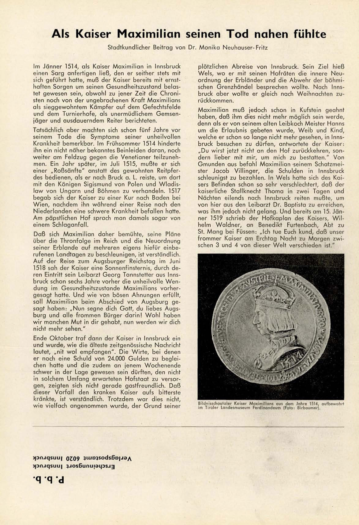 Im Jänner 1514, als K a i s e r M a x i m i l i a n in Innsbruck