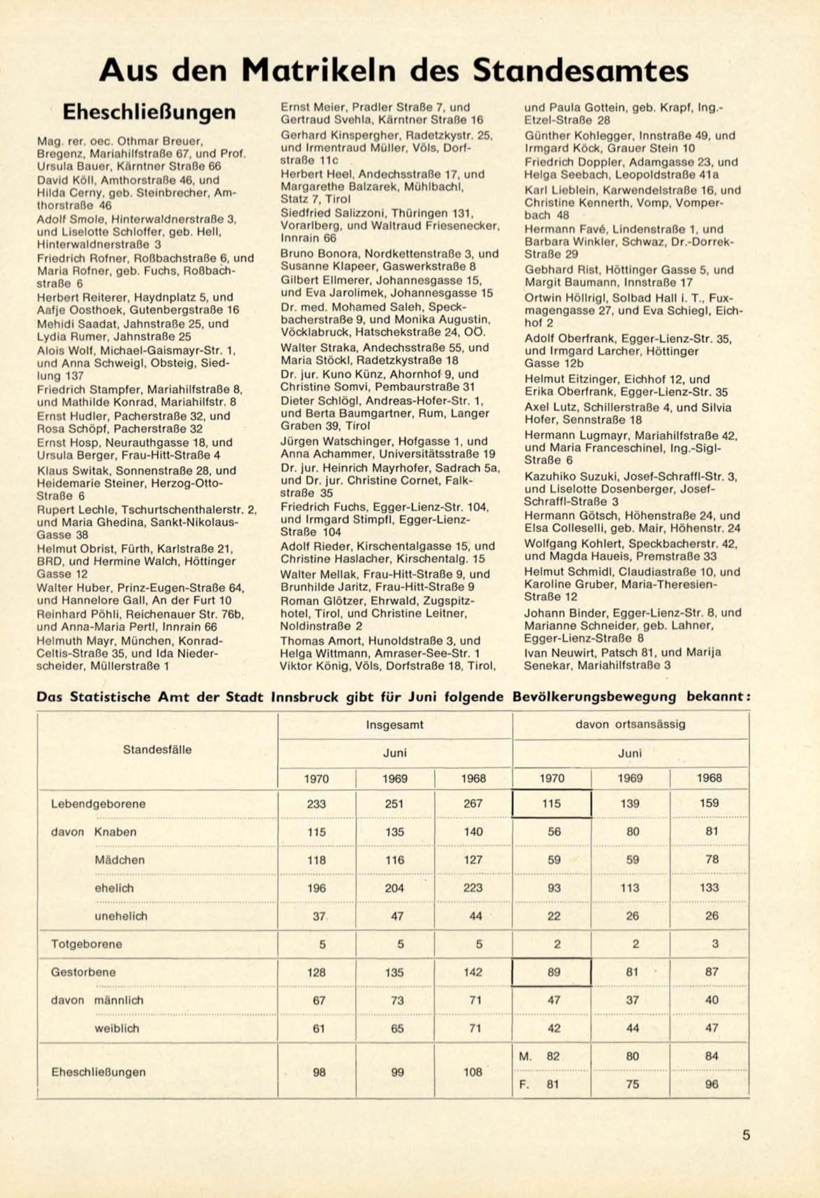 der Stadt Innsbruck gibt f ü r Juni folgende B e v ö l k e r u n g s b e w e g u n g