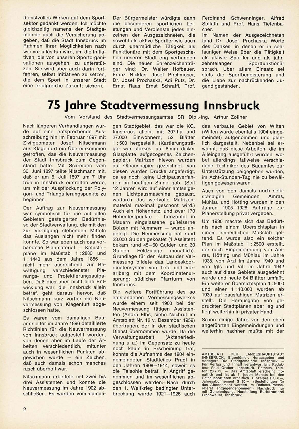Für V e r l a g und Inhalt verantwortlich: Redakteur Paul G r u b e r , Innsbruck, Rathaus, T e l e fon 26 7 71. - Das Amtsblatt erscheint monatlich und ist ab 5. jeden Monats bei den