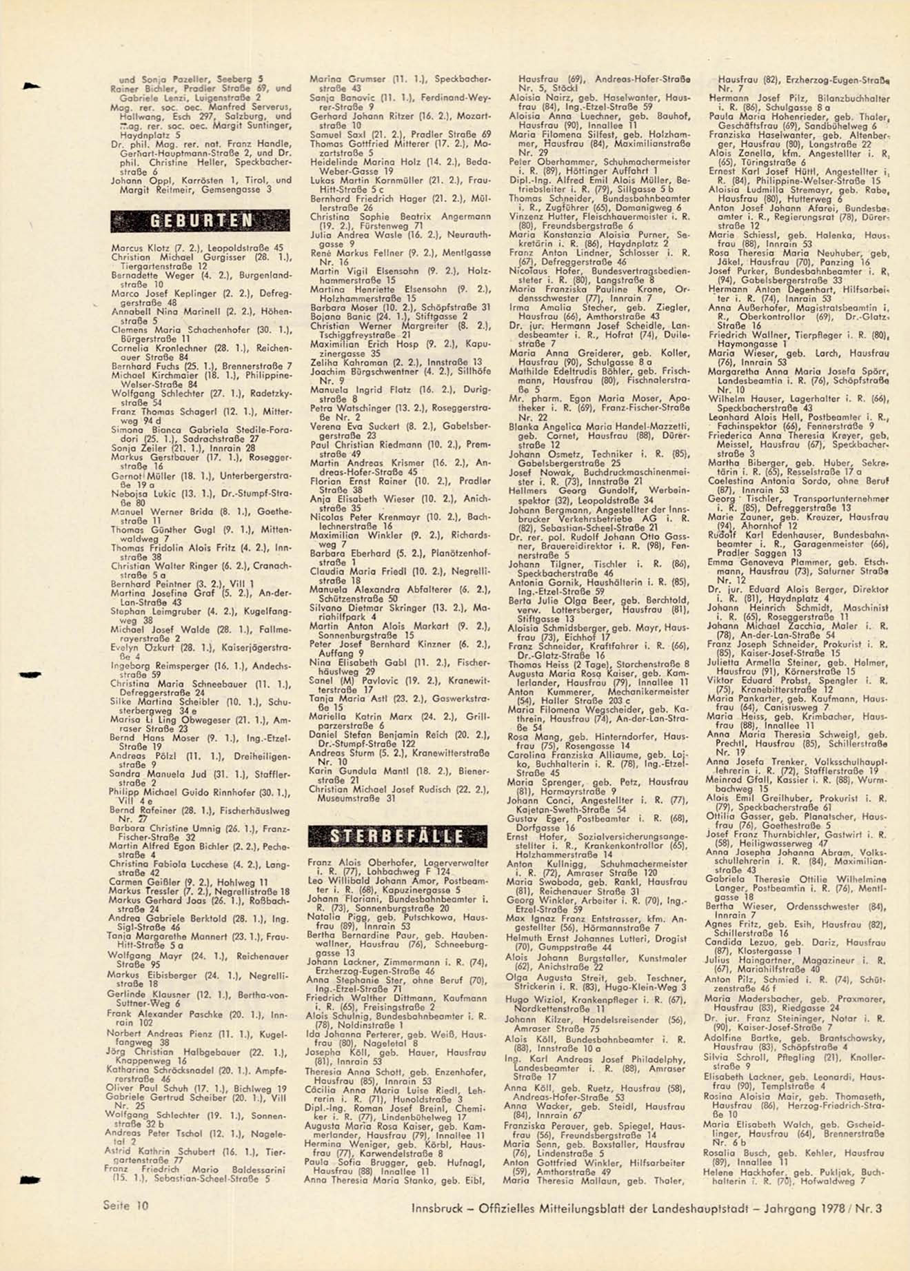 Innsbruck - Offizielles Mitteilungsblatt der Landeshauptstadt - Jahrgang 1978 / N r . 3