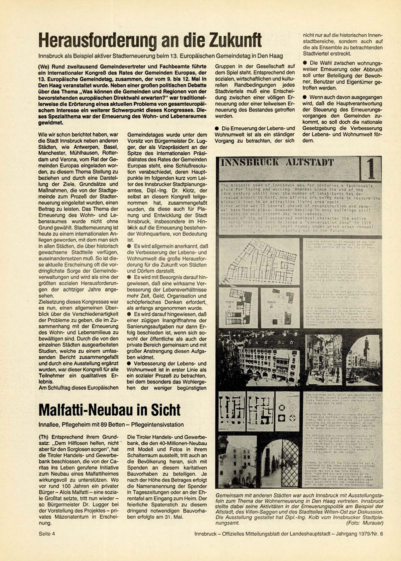 Innsbruck - Offizielles Mitteilungsblatt der Landeshauptstadt - Jahrgang 1979/Nr. 6