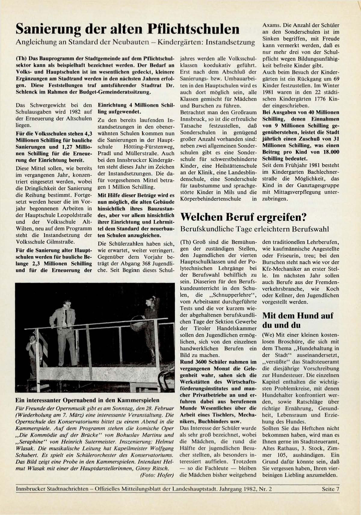 Innsbrucker Stadtnachrichten - Offizielles Mitteilungsblatt der Landeshauptstadt. Jahrgang 1982, N r . 2
