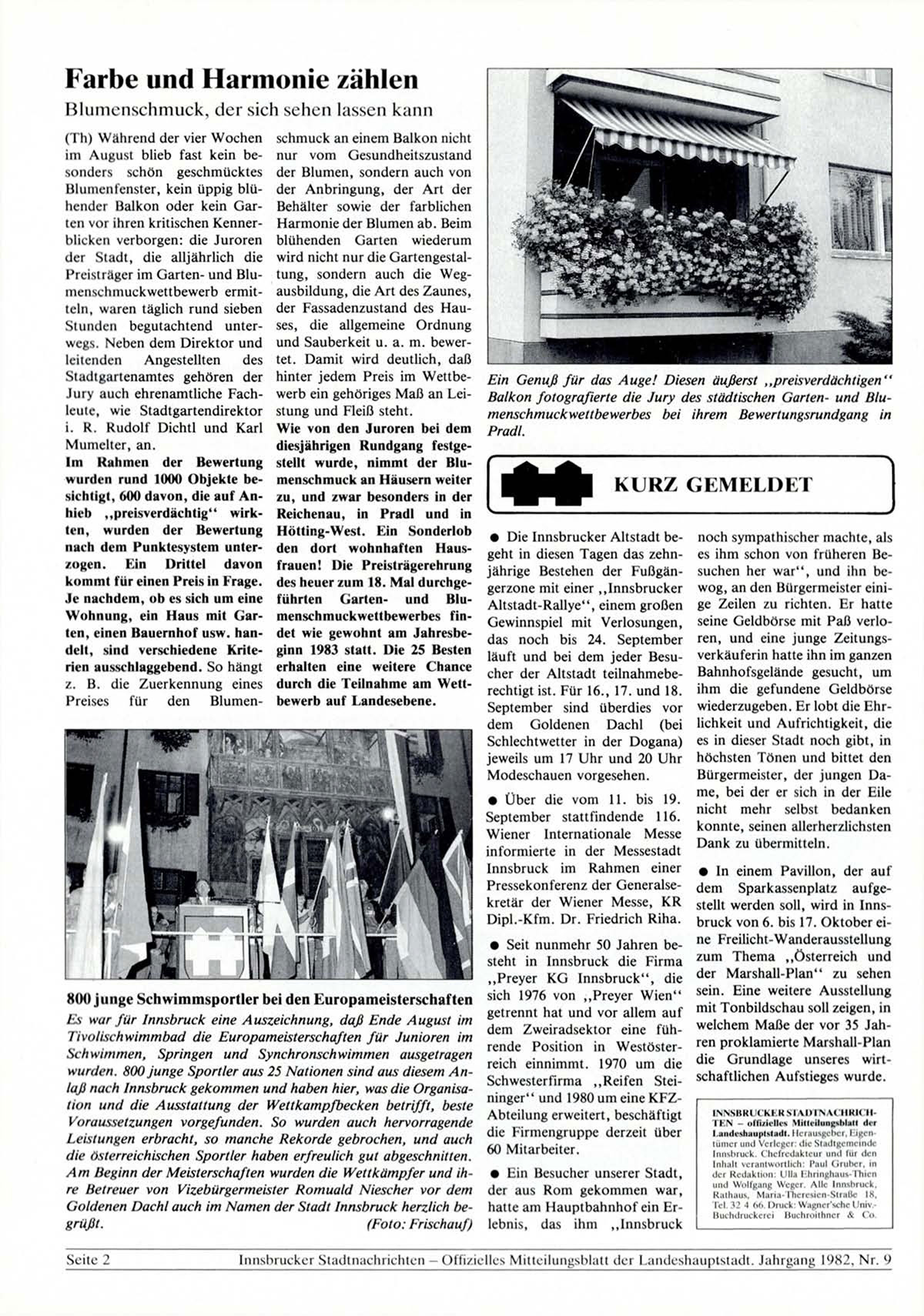 Itmshruckcr Stadtnachrichten - Offizielles Mitteilungsblatt der Landeshauptstadt. Jahrgang 1982, Nr. 9