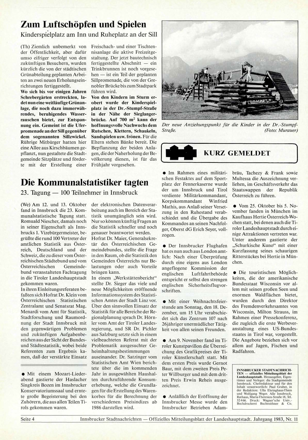 Innsbrucker Stadtnachrichten — Offizielles Mitteilungsblatt der Landeshauptstadt. Jahrgang 1983, Nr. 11