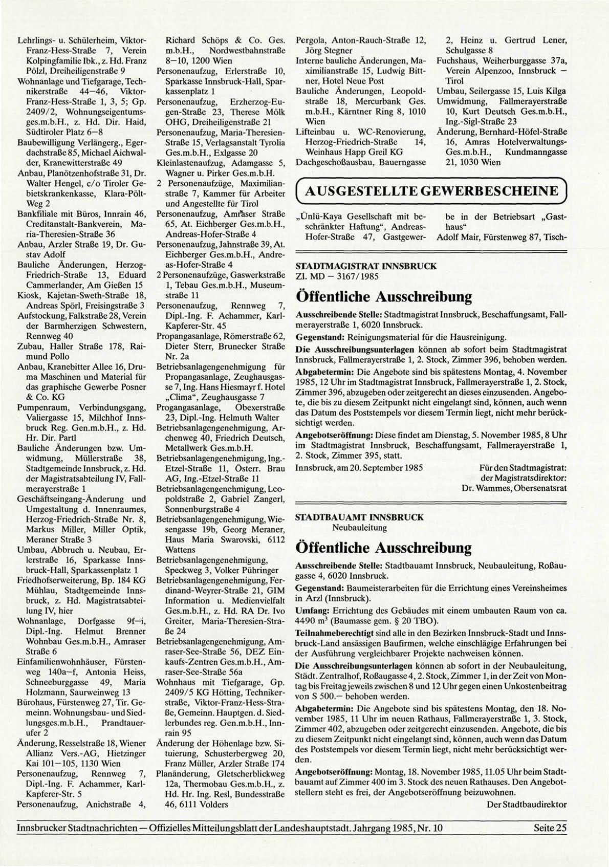 Innsbrucker Stadtnachrichten — Offizielles Mitteilungsblatt der Landeshauptstadt. Jahrgang 1985, Nr. 10