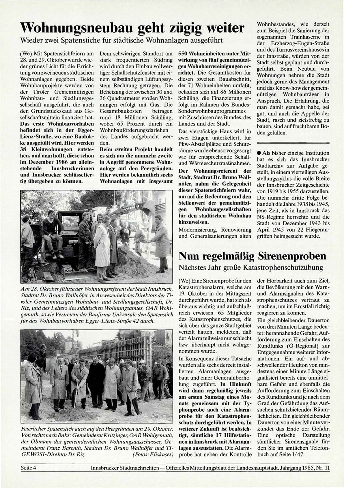 Stadtrat Dr. Bruno Wallnöfer, in Anwesenheit des Direktors der Tiroler Gemeinnützigen Wohnbau- und Siedlungsgesellschaft, Dr. durchgeführt wurde, hat sich als