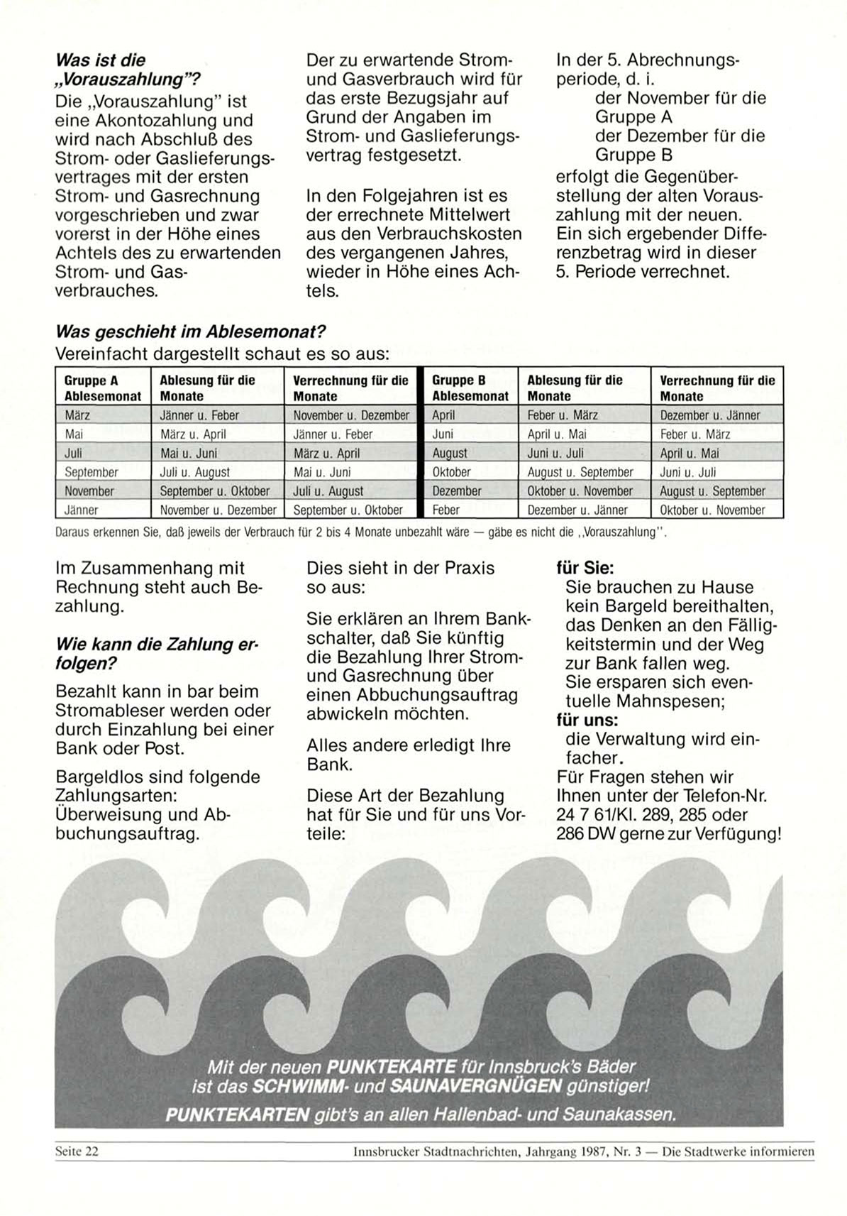 Innsbrucker Stadtnachrichten, Jahrgang 1987, Nr. 3 — Die Stadtwerke informieren