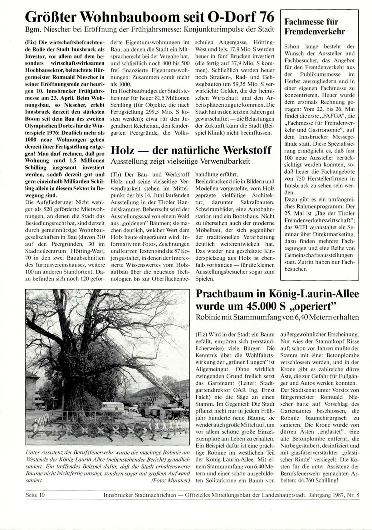 Innsbrucker Stadtnachrichten — Offizielles Mitteilungsblatt der Landeshauptstadt. Jahrgang 1987, Nr. 5