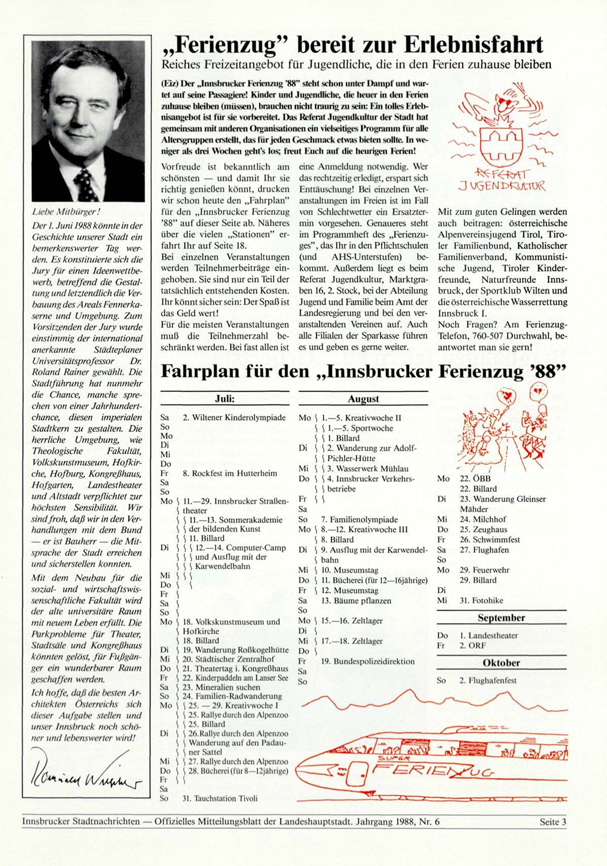 Fahrplan für den „Innsbrucker Ferienzug "88!