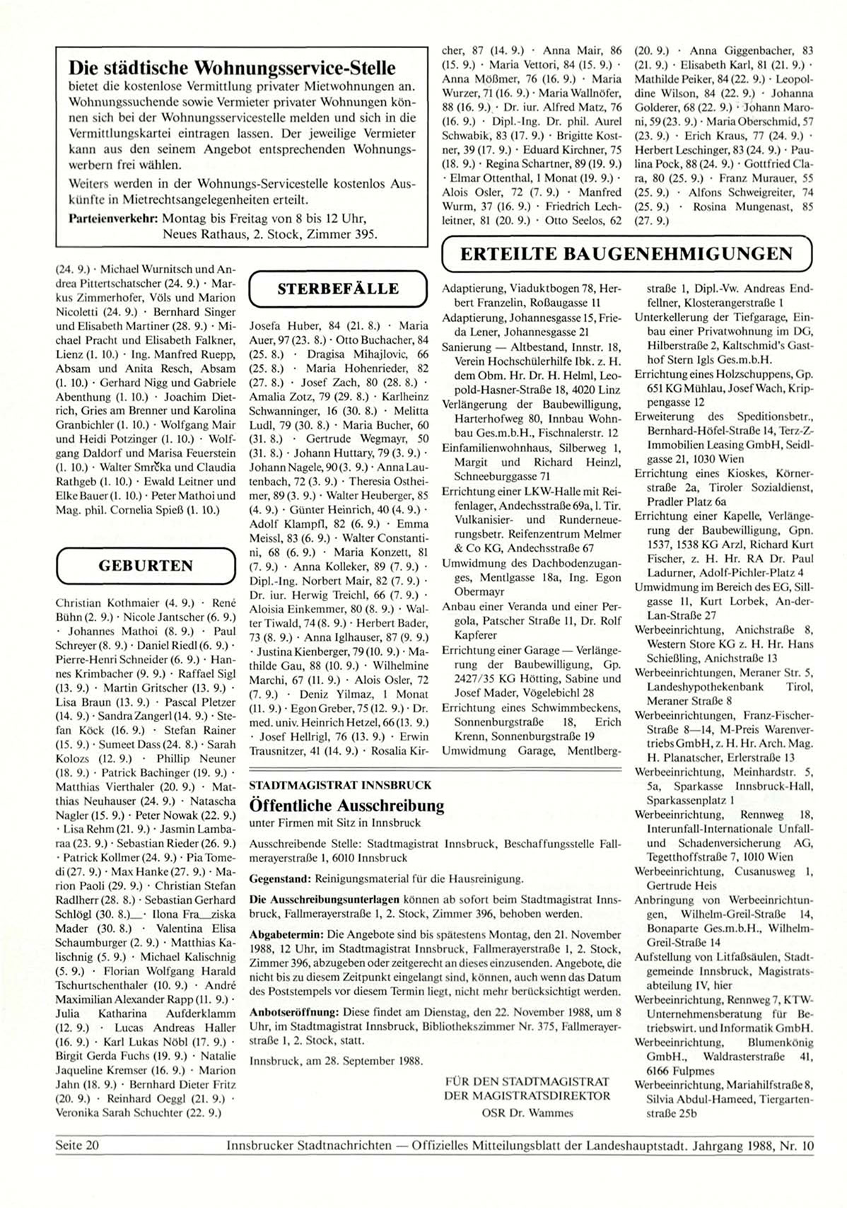 Innsbrucker Stadtnachrichten —Offizielles Mitteilungsblatt der Landeshauptstadt. Jahrgang 1988, Nr. 10