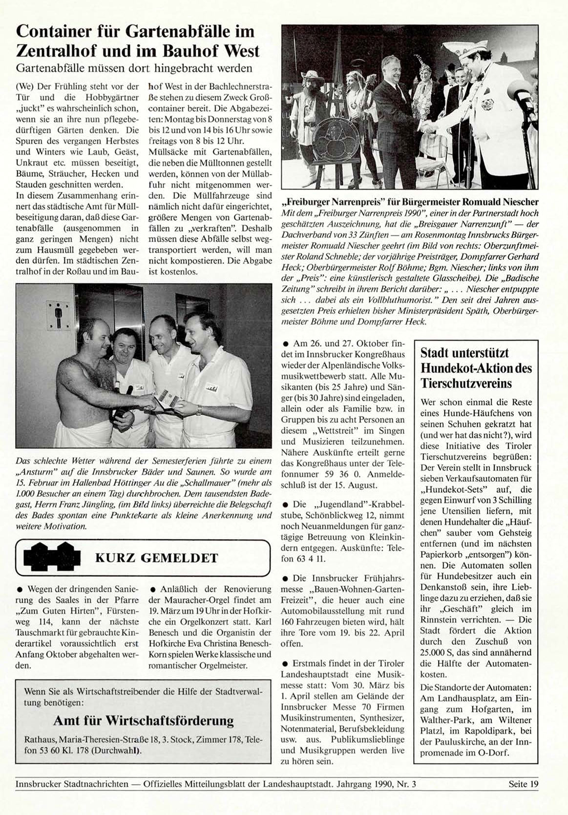 Innsbrucker Stadtnachrichten — Offizielles Mitteilungsblatt der Landeshauptstadt. Jahrgang 1990, Nr. 3