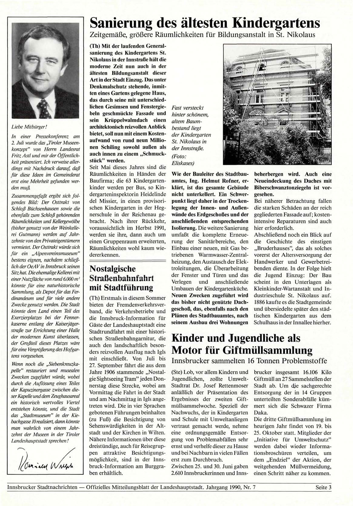 Innsbrucker Stadtnachrichten — Offizielles Mitteilungsblatt der Landeshauptstadt. Jahrgang 1990, Nr. 7