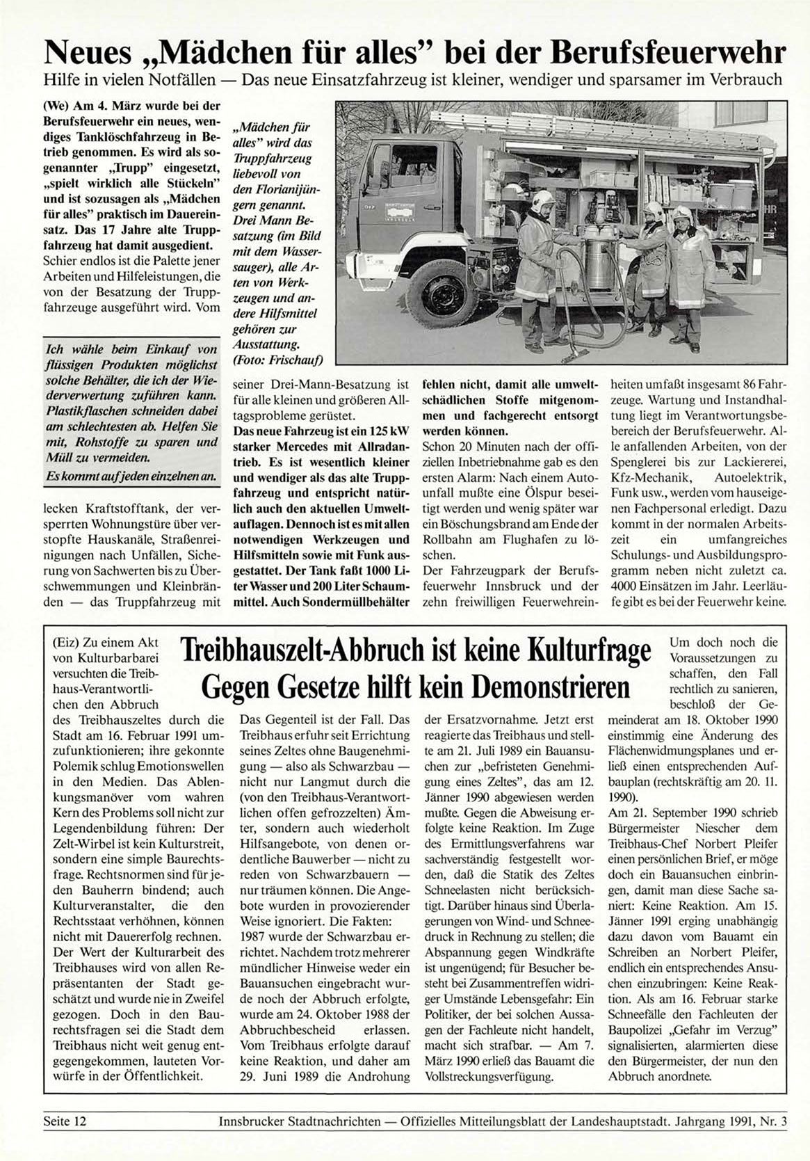 Innsbrucker Stadtnachrichten — Offizielles Mitteilungsblatt der Landeshauptstadt. Jahrgang 1991, Nr. 3