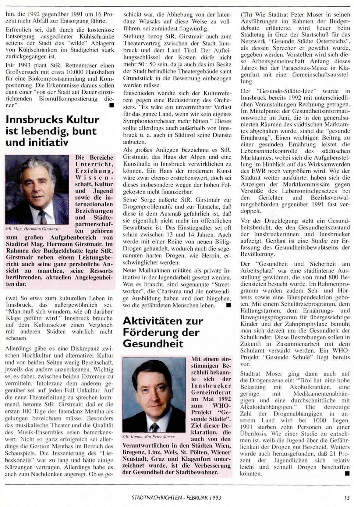 STADTNACHRICHTEN - FEBRUAR 1993