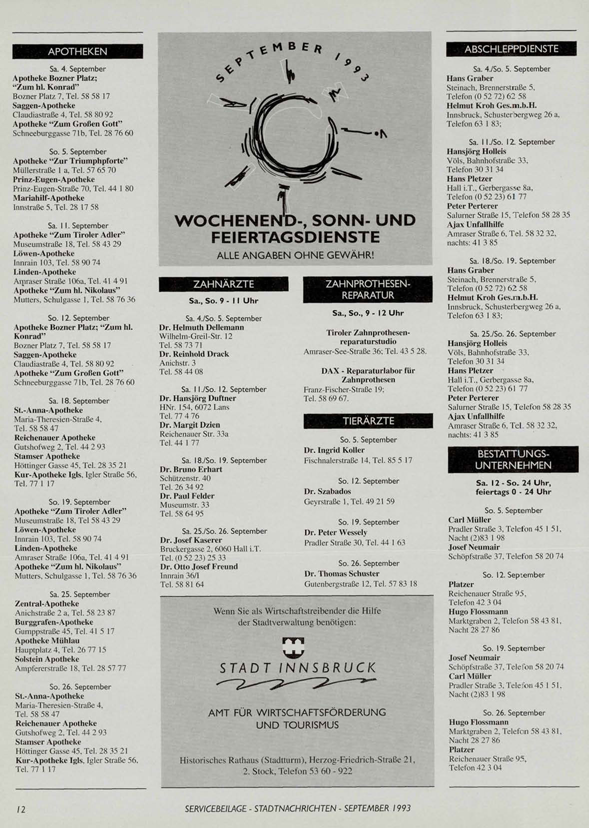 SERVICEBEILAGE - STADTNACHRICHTEN - SEPTEMBER 1993