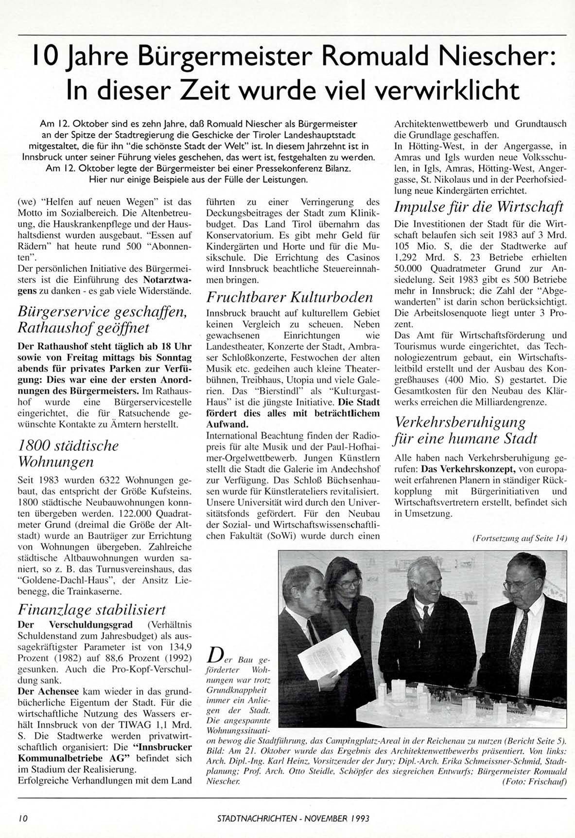 Innsbruck unter seiner Führung vieles geschehen, das w e r t ist, festgehalten zu w e r d e n .