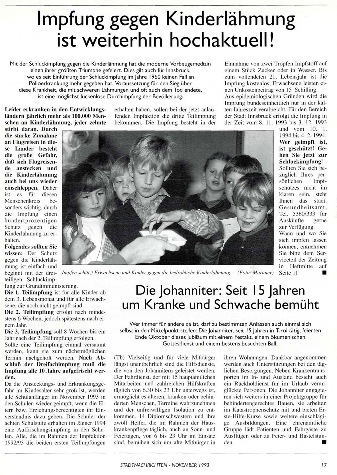 schen an Kinderlähmung, jeder zehnte bekommen. Die Impfung besteht in der der Zeit vom 8. 11. 1993 bis 3. 12. 1993