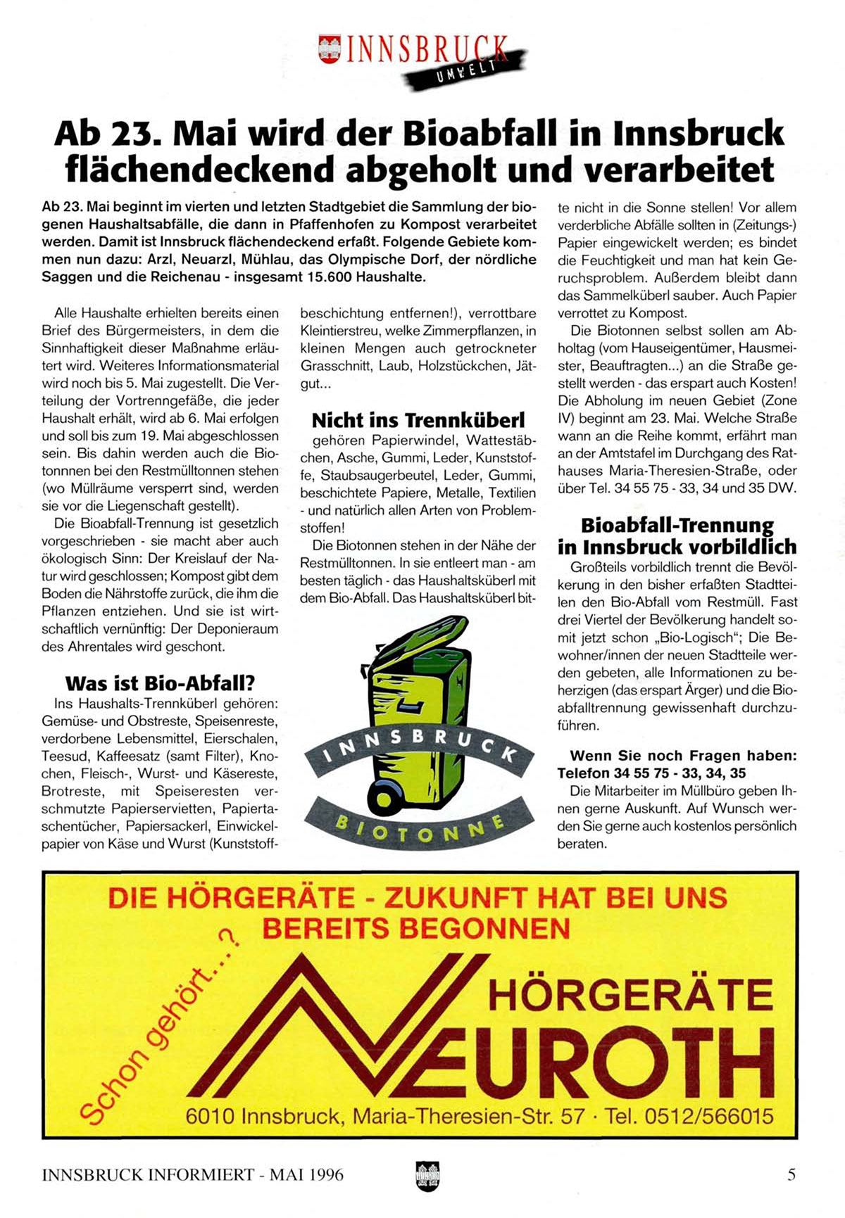 Ab 23. Mai wird der Bioabfall in Innsbruck
