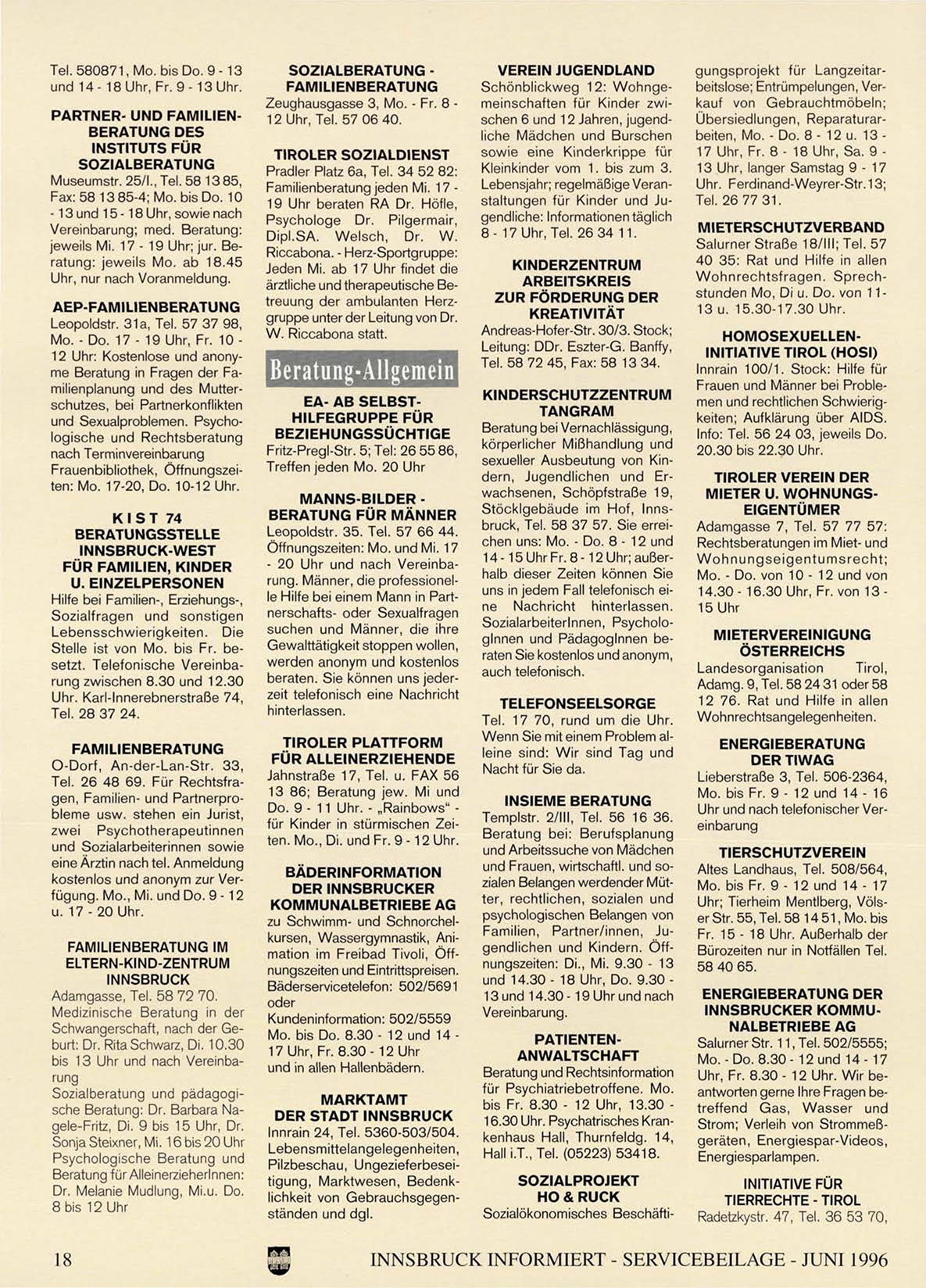 INNSBRUCK INFORMIERT - SERVICEBEILAGE - JUNI 1996