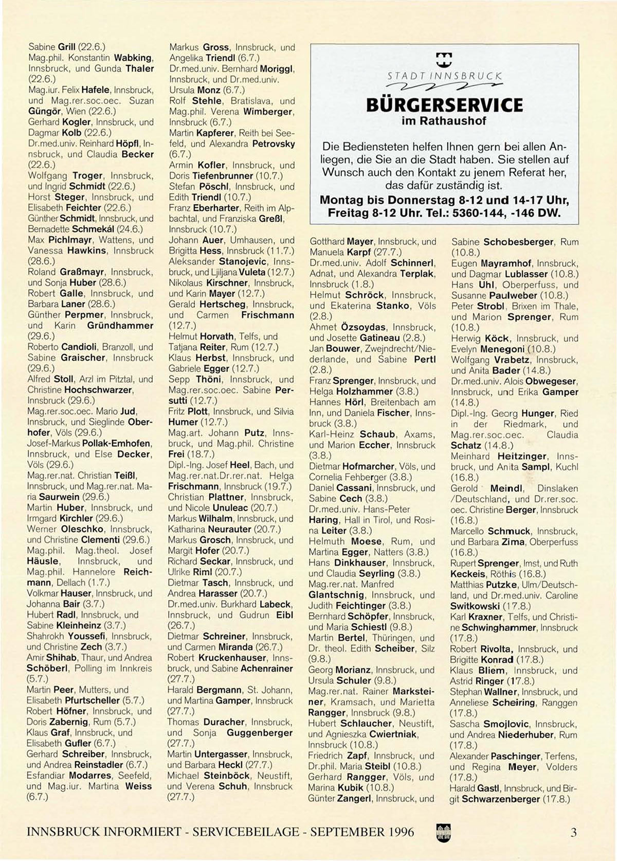 INNSBRUCK INFORMIERT - SERVICEBETLAGE - SEPTEMBER 1996
