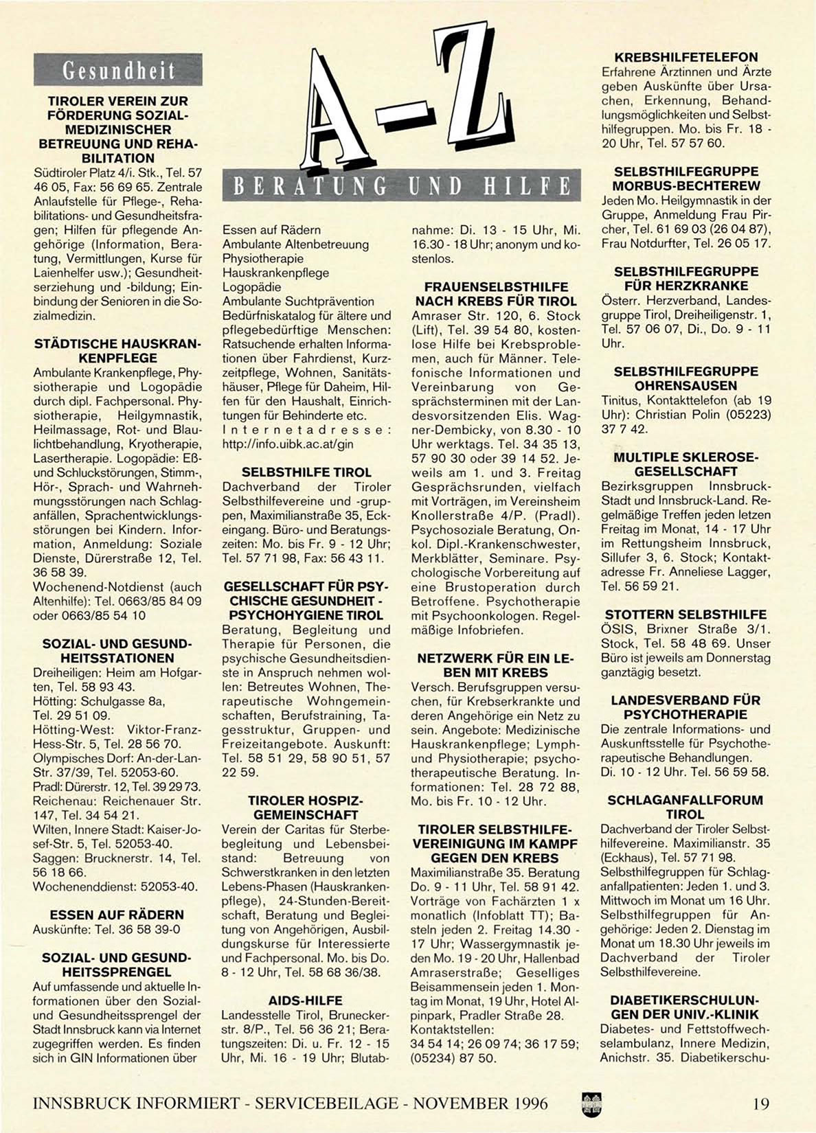 INNSBRUCK INFORMIERT - SERVICEBEILAGE - NOVEMBER 1996