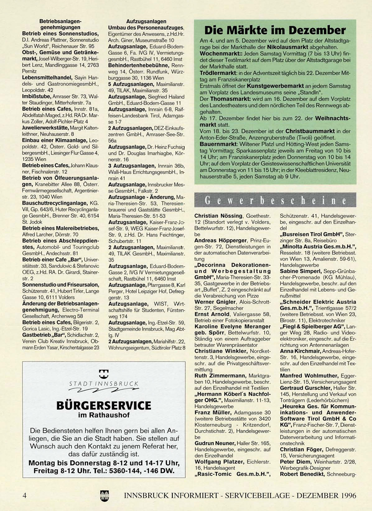 INNSBRUCK INFORMIERT - SERVICEBEILAGE - DEZEMBER 1996