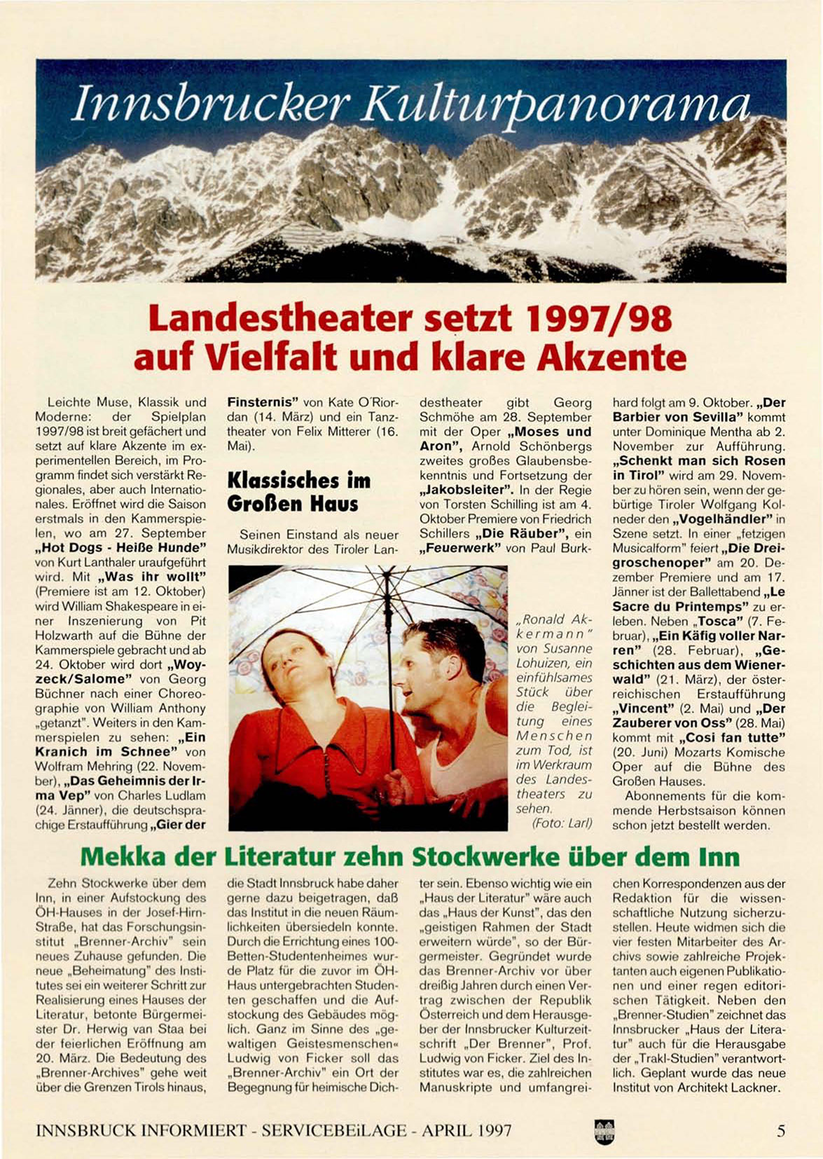 Innsbrucker „Haus der Literatur" auch für die Herausgabe