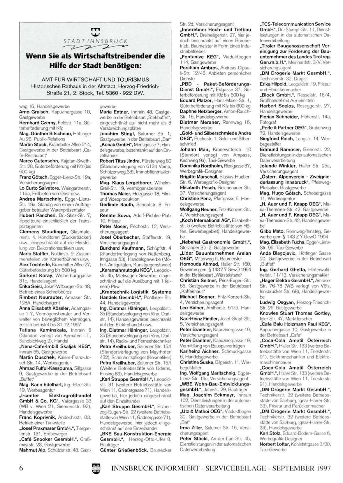 INNSBRUCK INFORMIERT - SERVICEBEILAGE - SEPTEMBER 1997