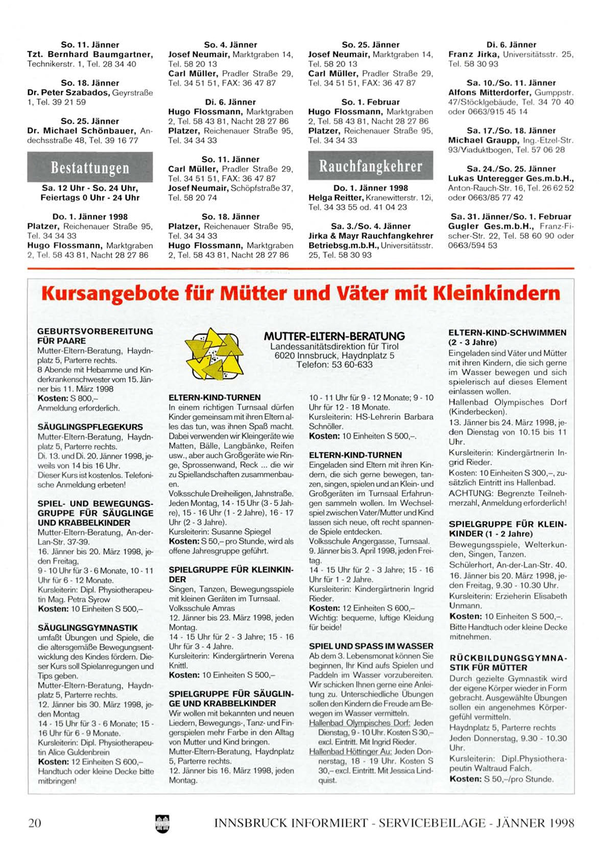 8 Abende mit Hebamme und Kinderkrankenschwester vom 15. Jänner bis 11. März 1998