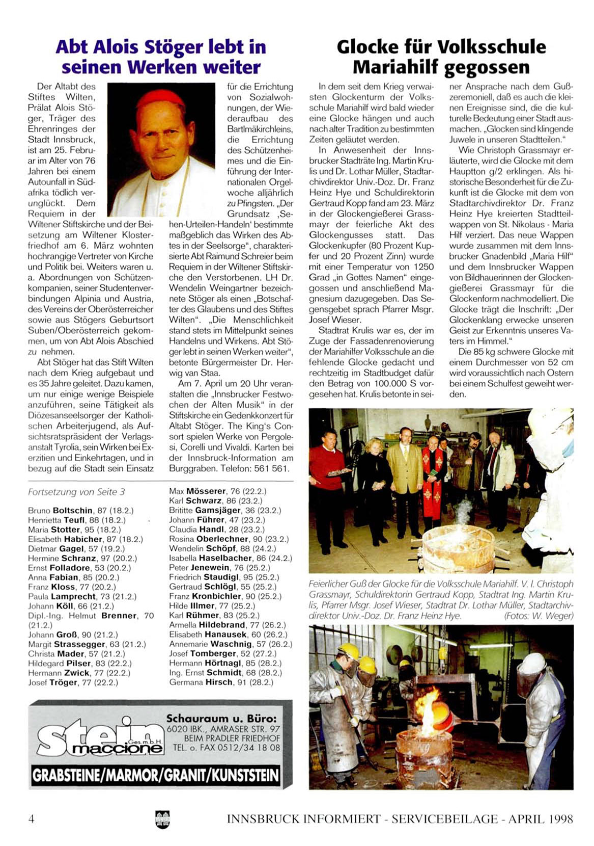 Feierlicher Guß der Glocke für die Volksschule Mariahilf. V. I. Christoph