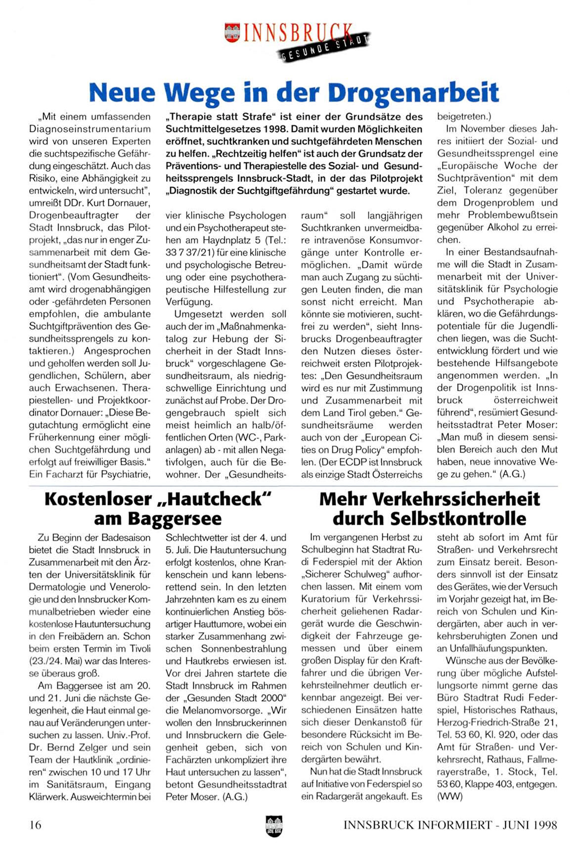 Stadt Innsbruck, das Pilotprojekt, „das nur in enger Zusammenarbeit mit dem Gesundheitsamt der Stadt funktioniert". (Vom Gesundheitsamt wird drogenabhängigen