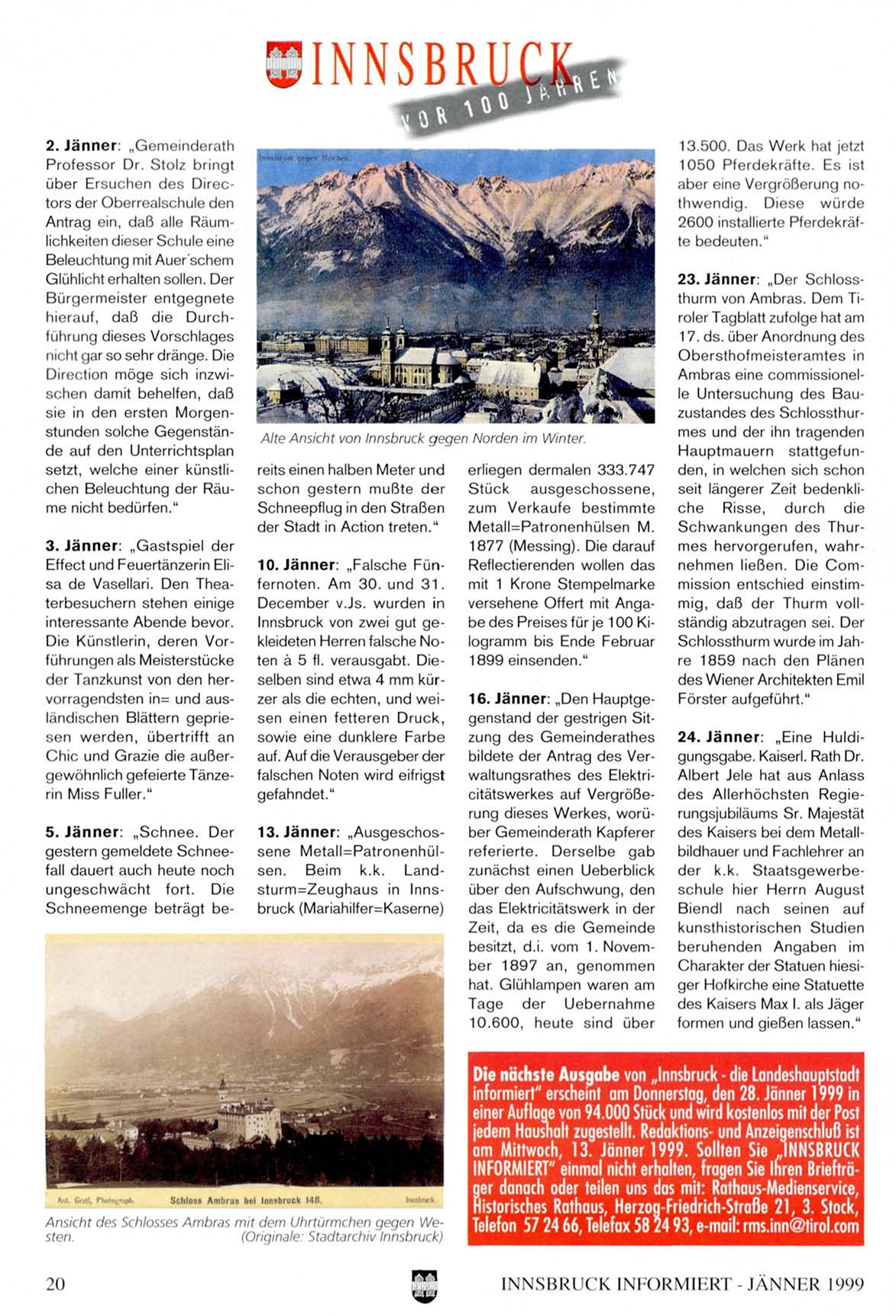 23. Jänner: „Der Schlossthurm von Ambras. Dem Tiroler Tagblatt zufolge hat am