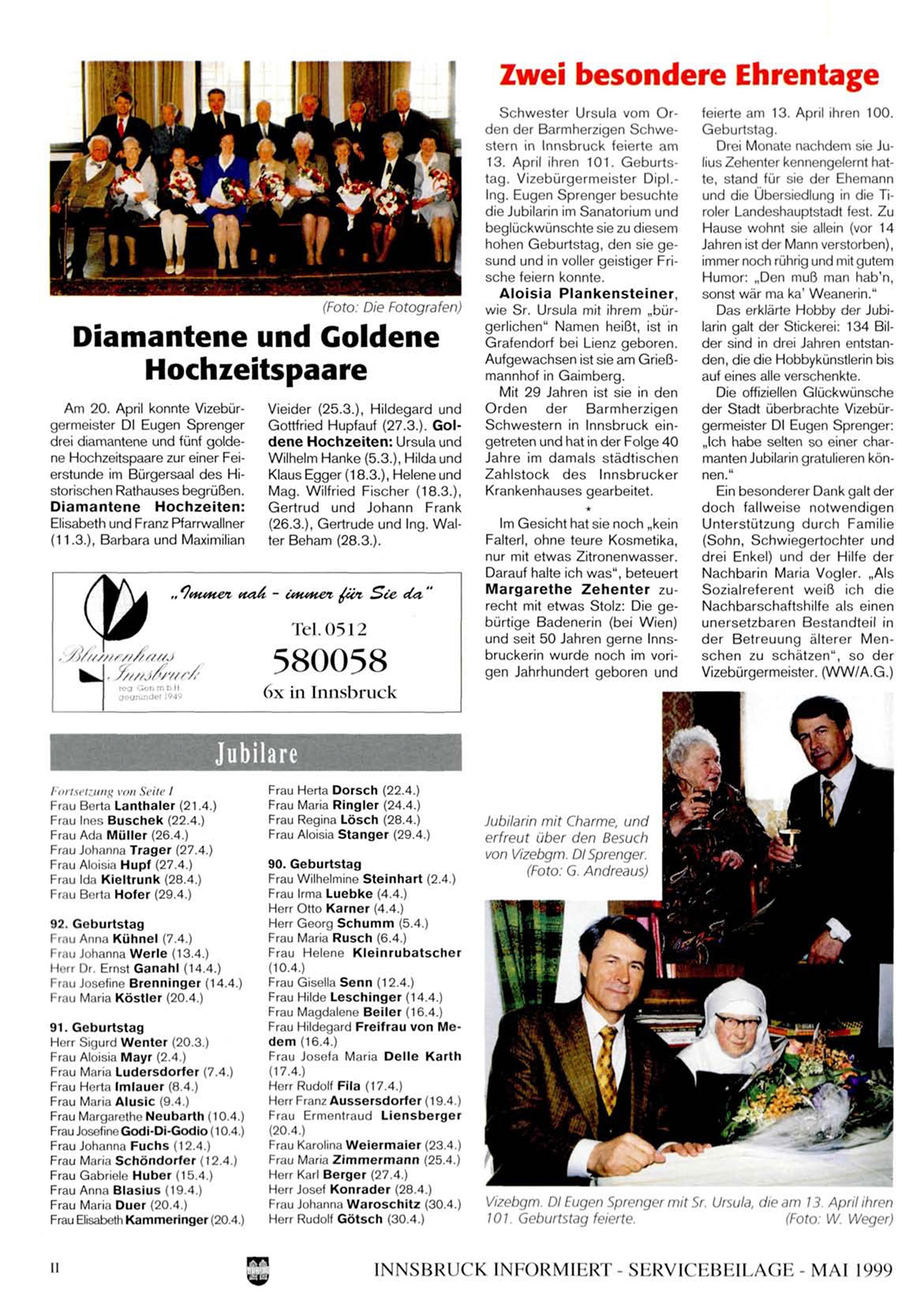 Gottfried Hupfauf (27.3.). Goldene Hochzeiten: Ursula und