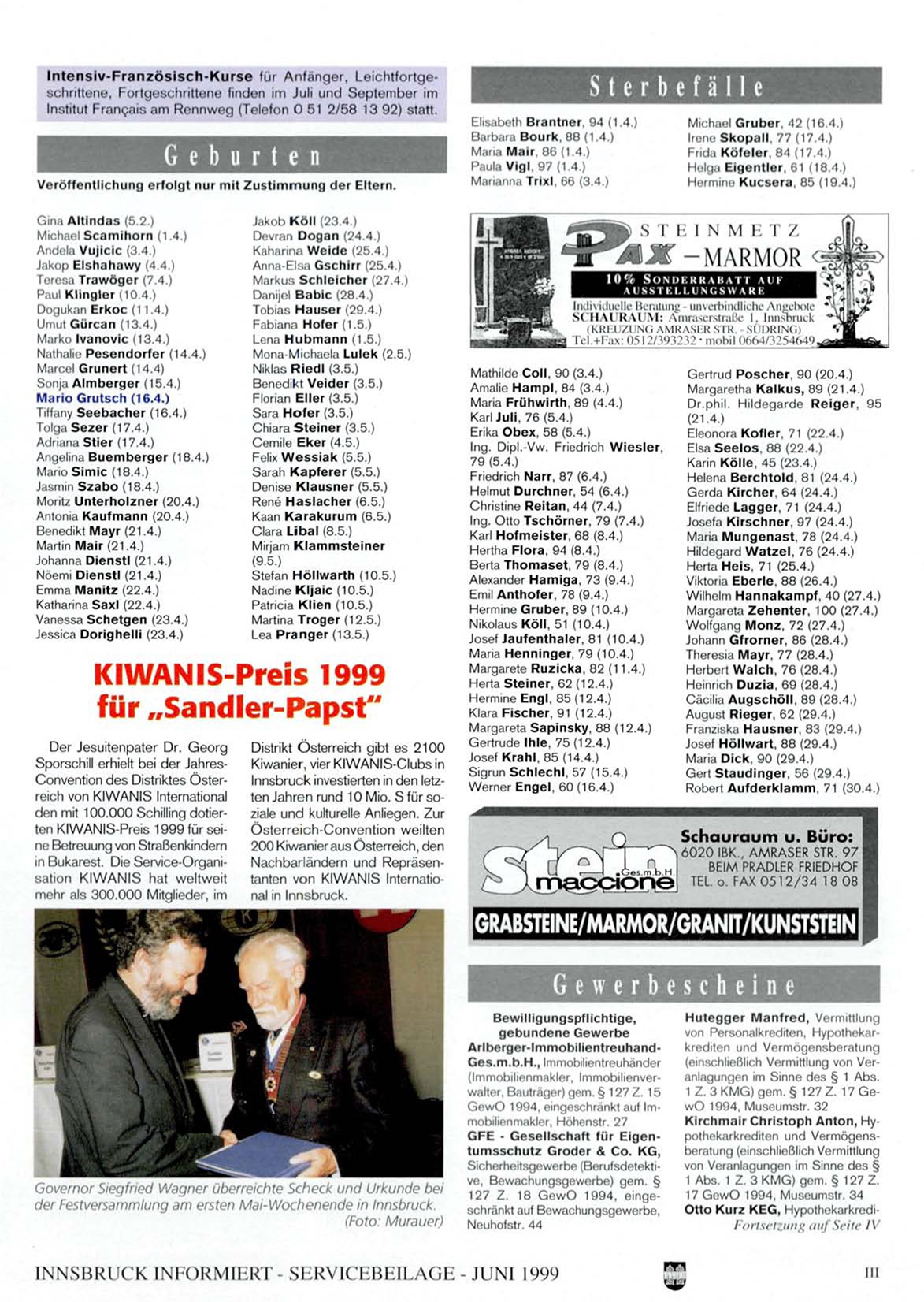 INNSBRUCK INFORMIERT- SLiRVICFBRILAGE - JUNI 1999