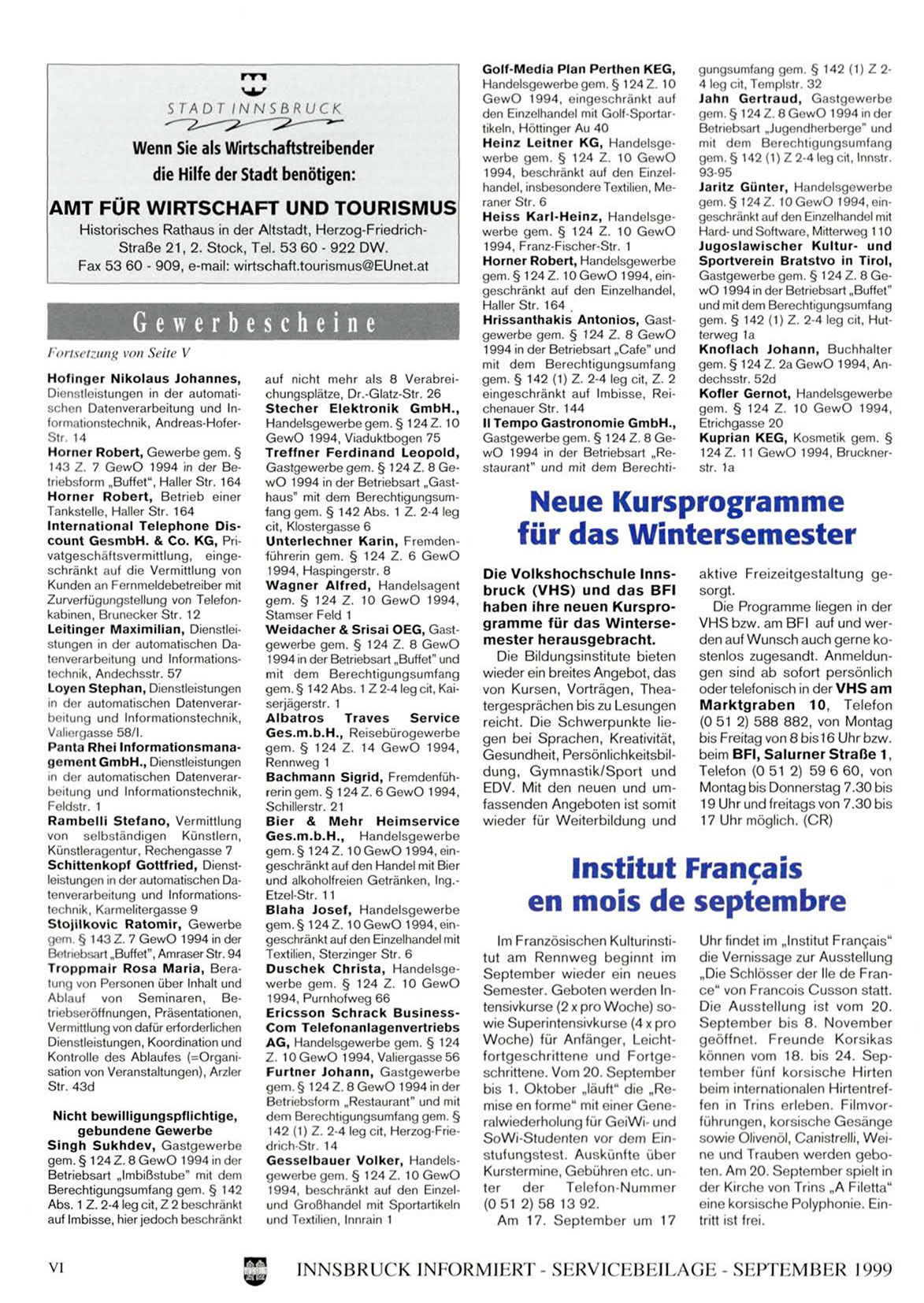 INNSBRUCK INFORMIERT- SKRVICHBHILACiH - SHPTHMBI-R 1999