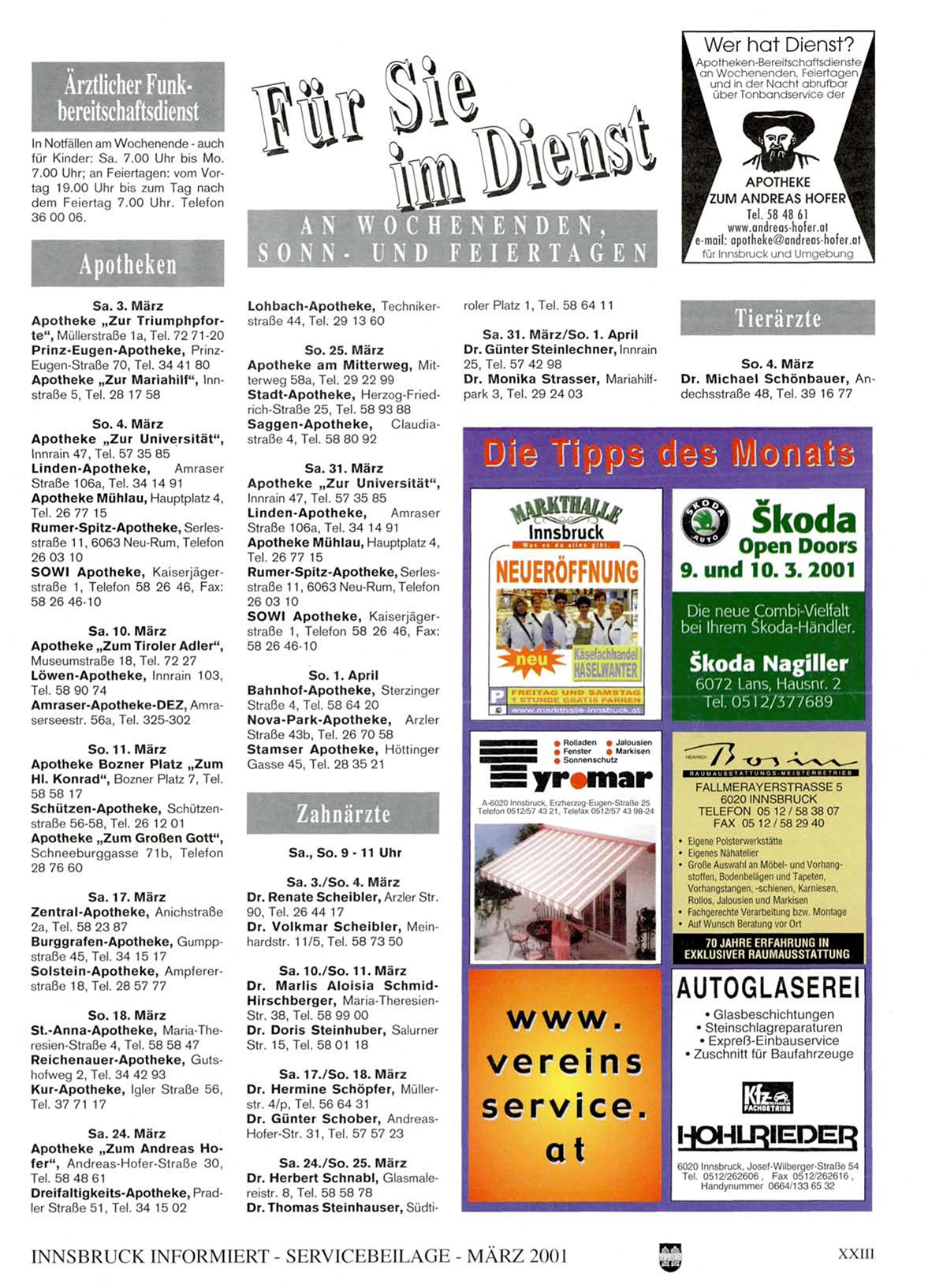 INNSBRUCK INFORMIERT - SERVICEBEILAGE - MÄRZ 2001