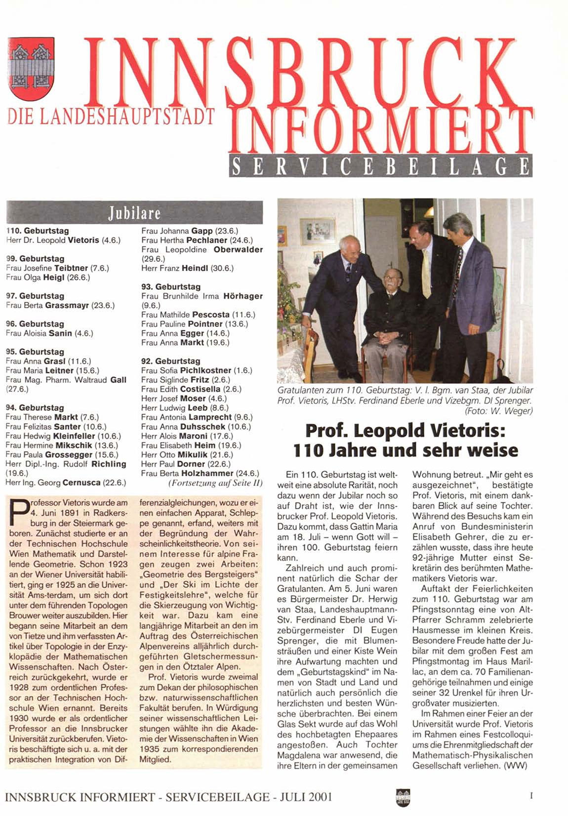 I N N S B R U C K INFORMIERT - S E R V I C E B E I L A G E - JULI 2001
